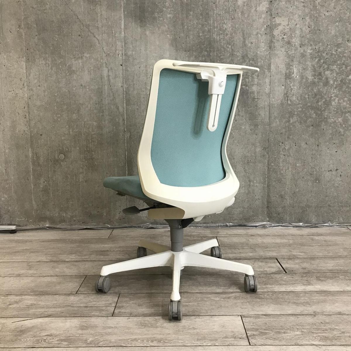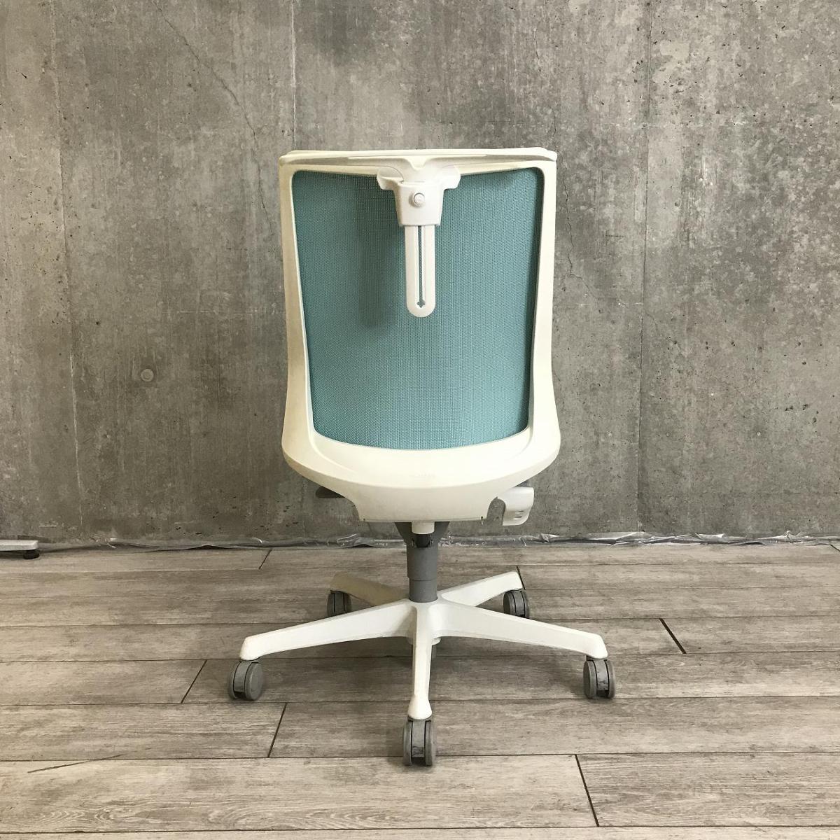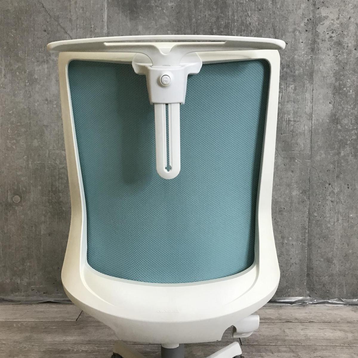 【腰まわりをしっかりホールド!長時間作業も快適フィット!】■オカムラ(okamura)製 フルーエントチェア(Fluent) ローバック 肘無し ■背面メッシュ ■セージブルー×ホワイトシェル〈岐阜・愛知・三重・静岡・福井〉