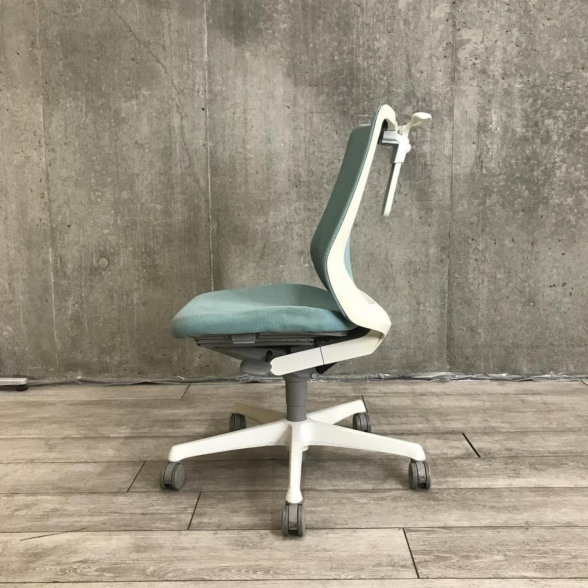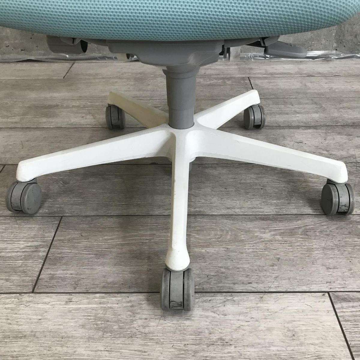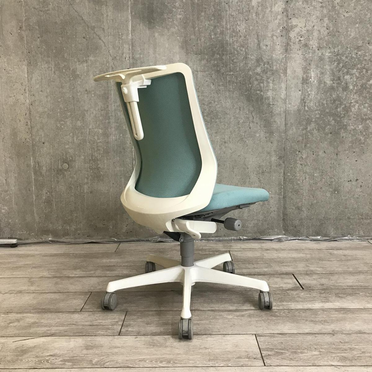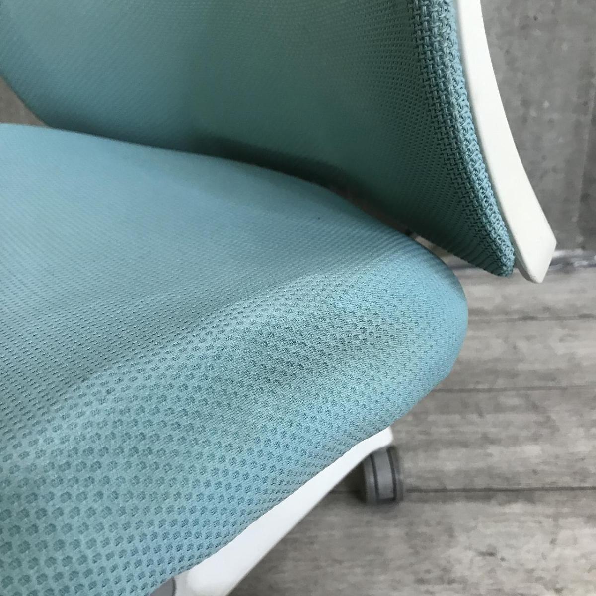 【腰まわりをしっかりホールド!長時間作業も快適フィット!】■オカムラ(okamura)製 フルーエントチェア(Fluent) ローバック 肘無し ■背面メッシュ ■セージブルー×ホワイトシェル〈岐阜・愛知・三重・静岡・福井〉