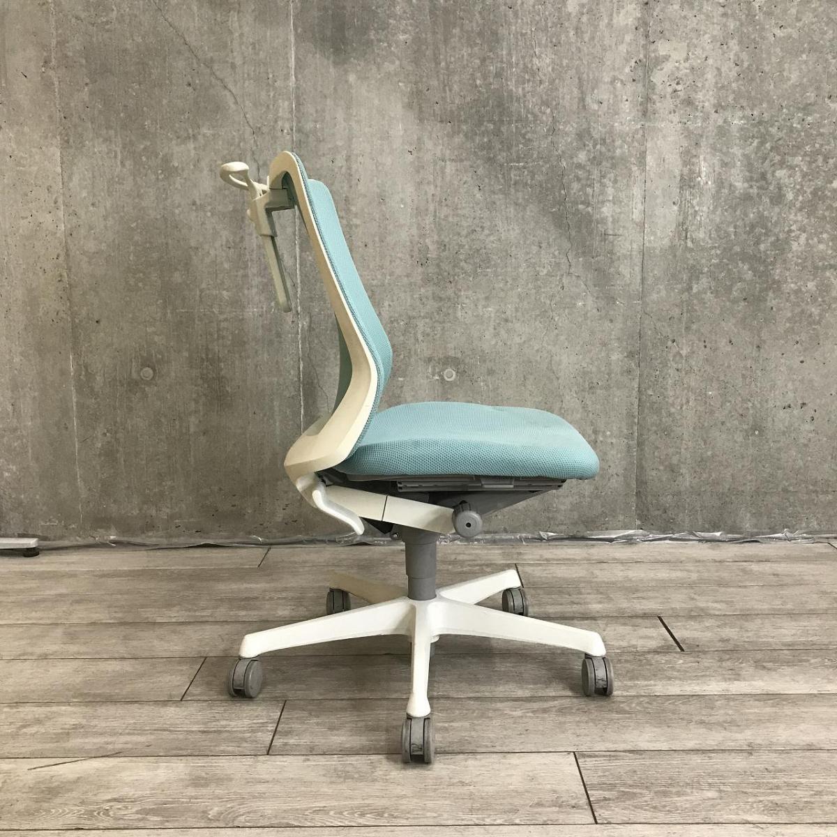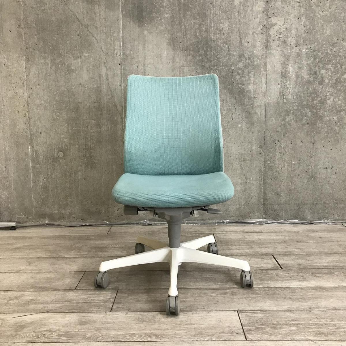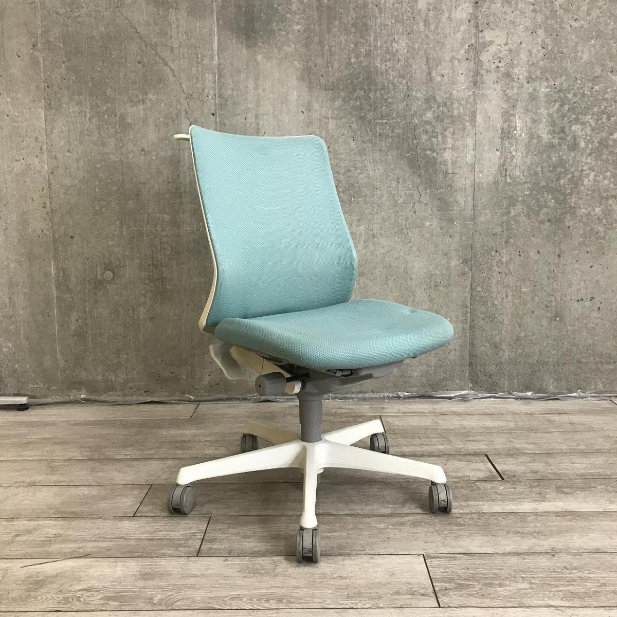 【関東倉庫在庫品】【背中を立体的に包み込むフィット感が心地よい!】【在庫入替セール品】■オカムラ製 フルーエント 肘無しローバックチェア ■ライトブルー【弊社使用欄:A01022487】【ECBMC】- 渋谷サテライト