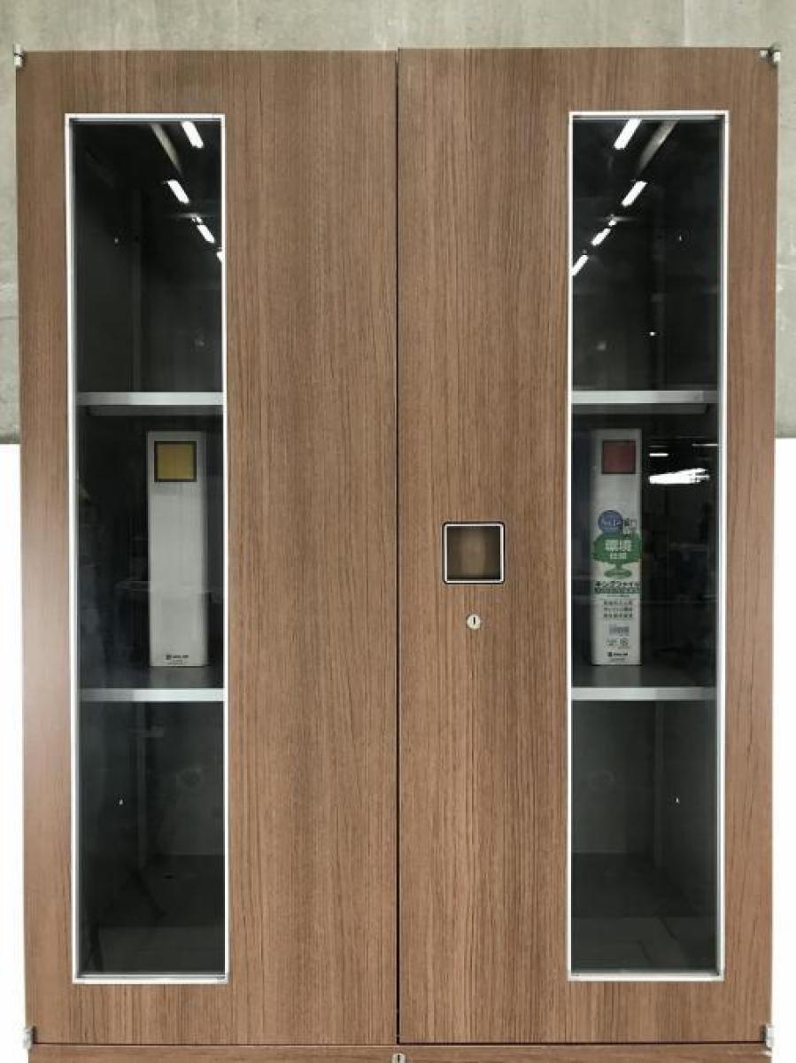 両開き書庫はガラス窓で中身が見えるので、整理整頓とデザイン性を両立!