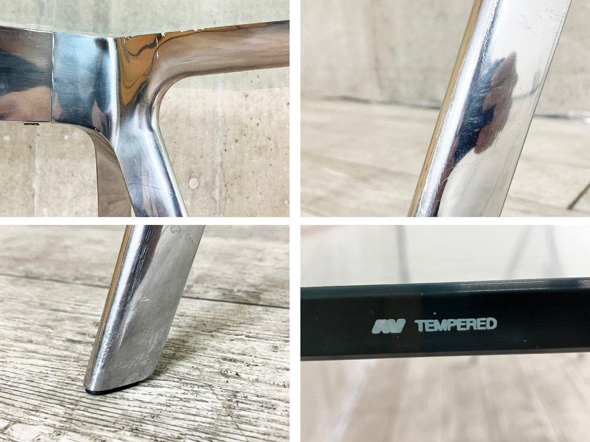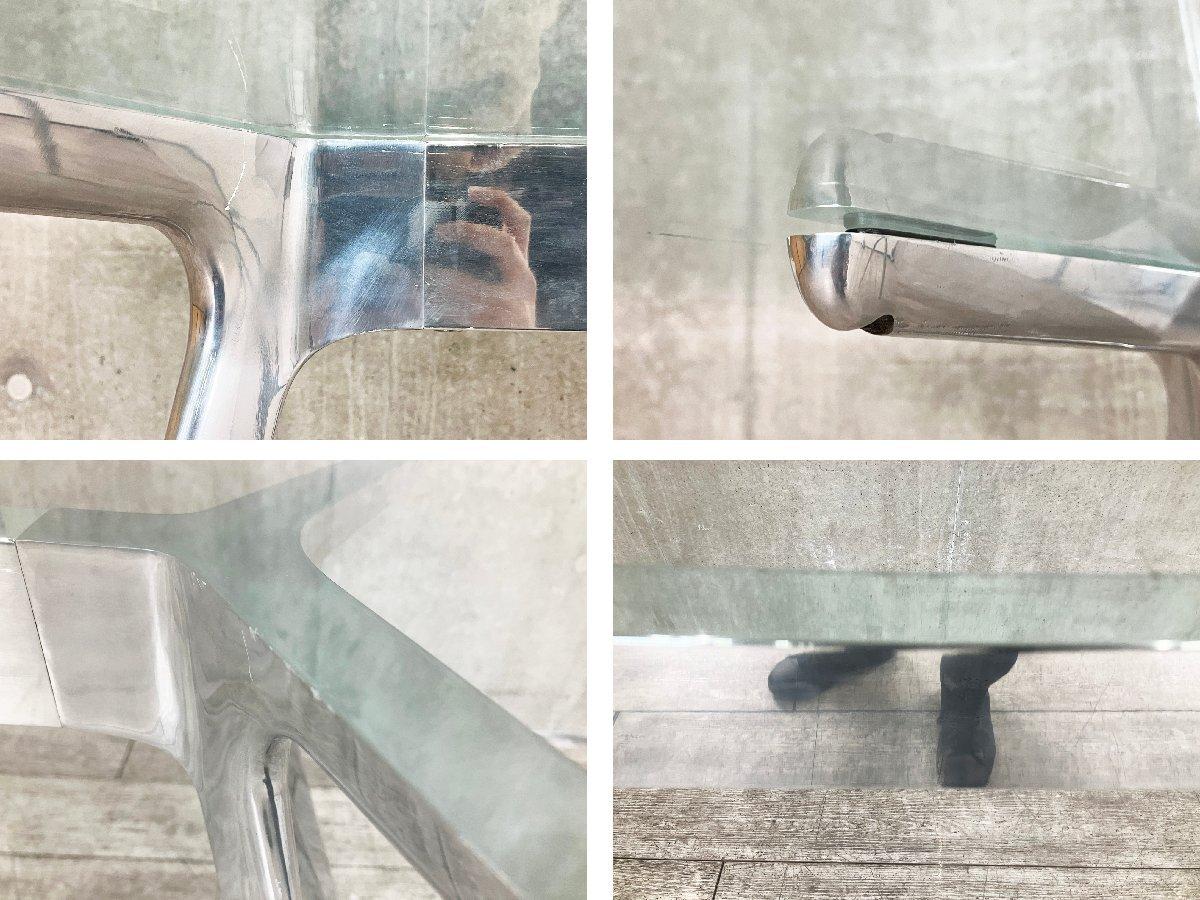 一見すると重厚な金属をイメージさせますが、 テーブル周りに立った時には、 ベース部分が見えないようにデザインされており、 まるで天板が宙に浮いているような 不思議な浮遊感を与えてくれるダイニングテーブルです。