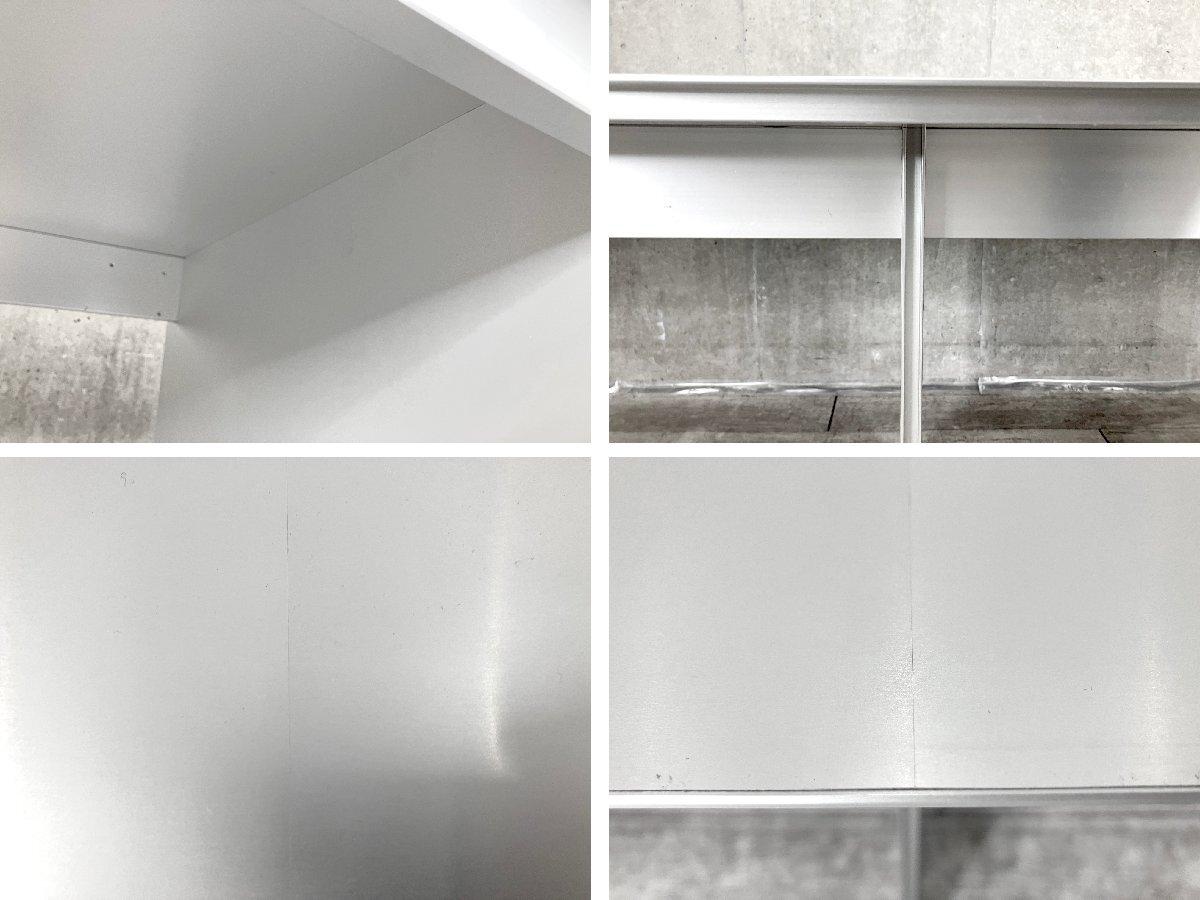 - 目立つ箇所複数あり深い傷・凹みが商品全体にある。(例、天板、幕板、棚板、サイド部分、脚部等にある。)