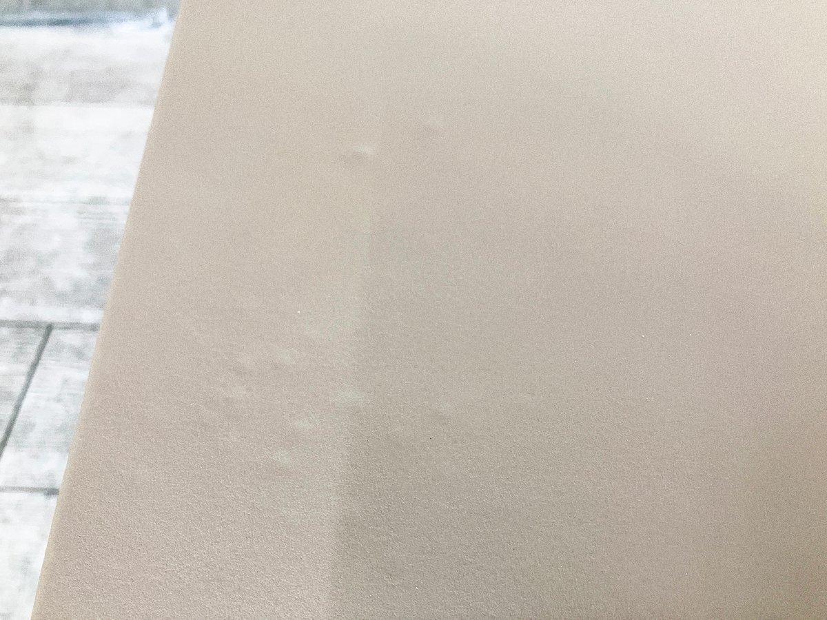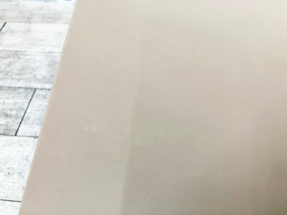 - あり黄ばみ・変色が広い範囲にうっすらある、または濃い黄ばみ・変色が一部ある。(例、天板、幕板、棚板、サイド部分、脚部等にある。)