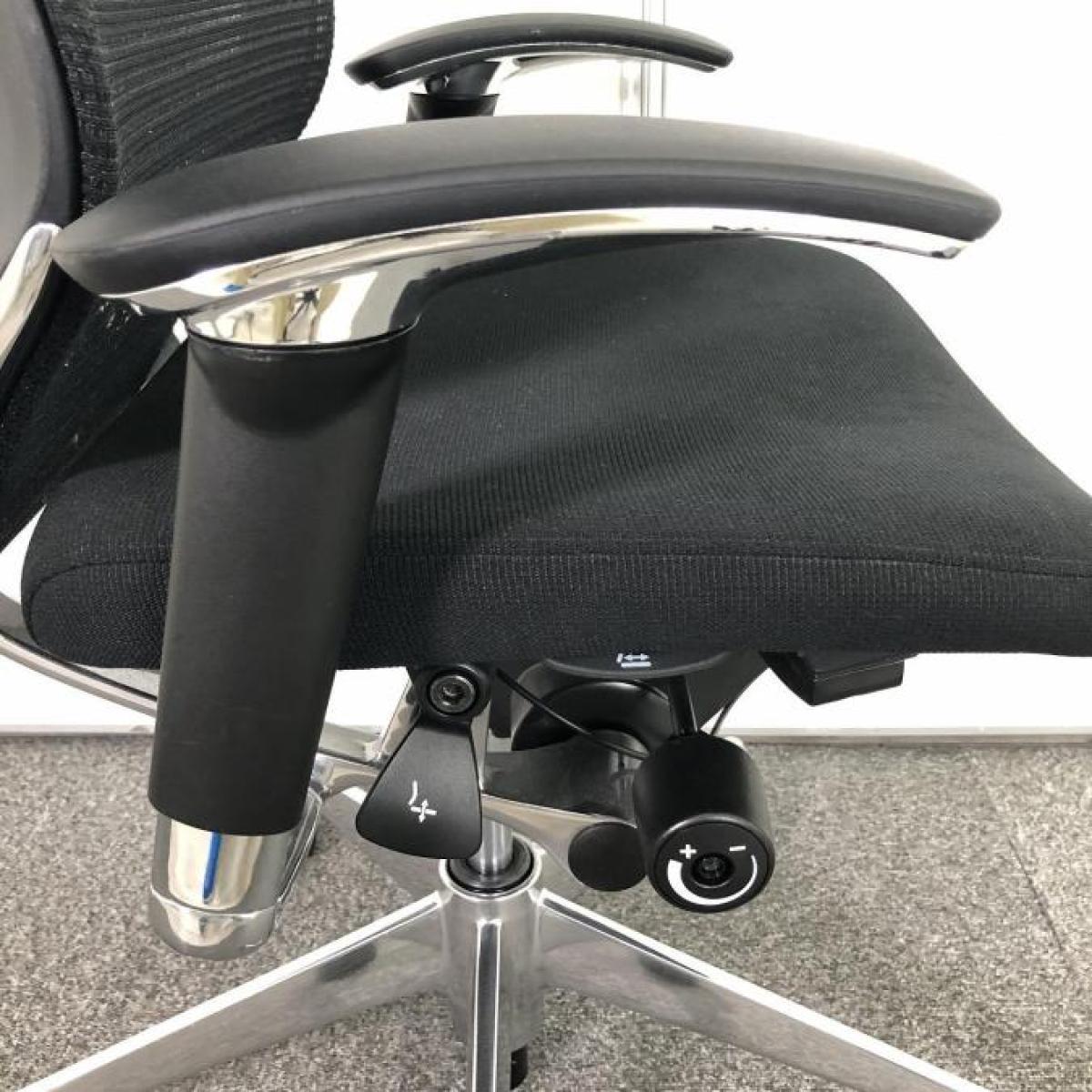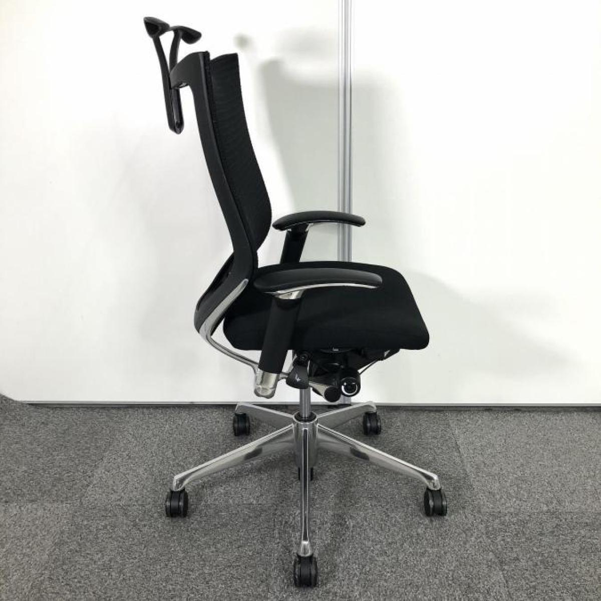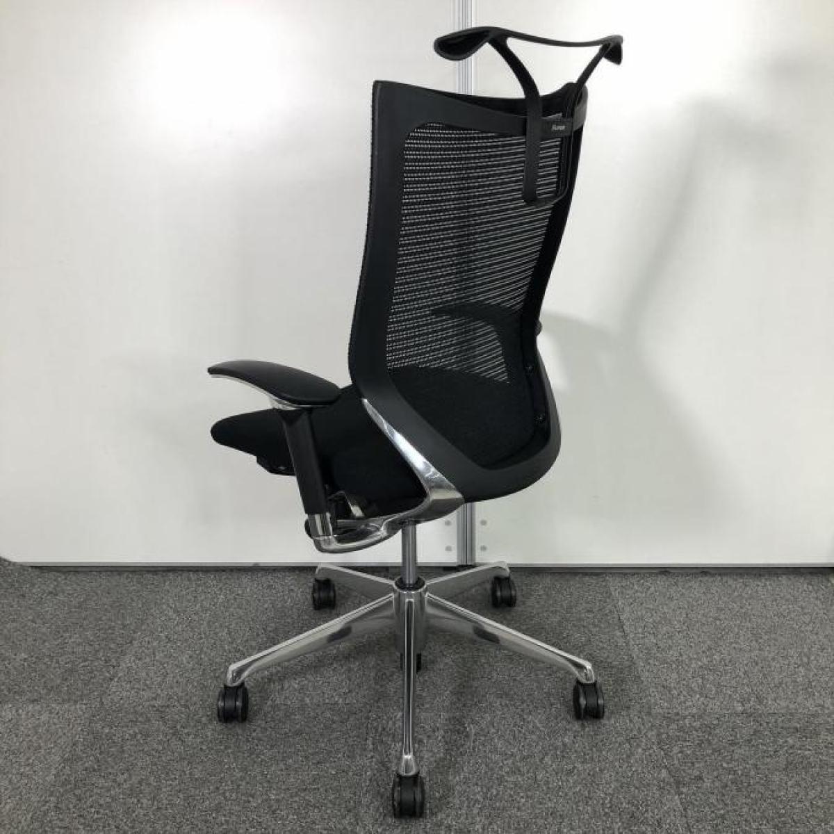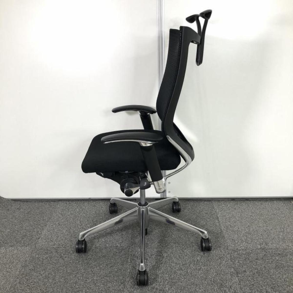 【限定1脚】人気のヘッドレスト付!数量限定入荷!【良い椅子は腰を守る投資です!】■オカムラ バロンチェア 可動肘付 ブラック ヘッドレスト付 座面メッシュ シルバーフレーム ハンガー付 ■上質な座り心地を体感できます!