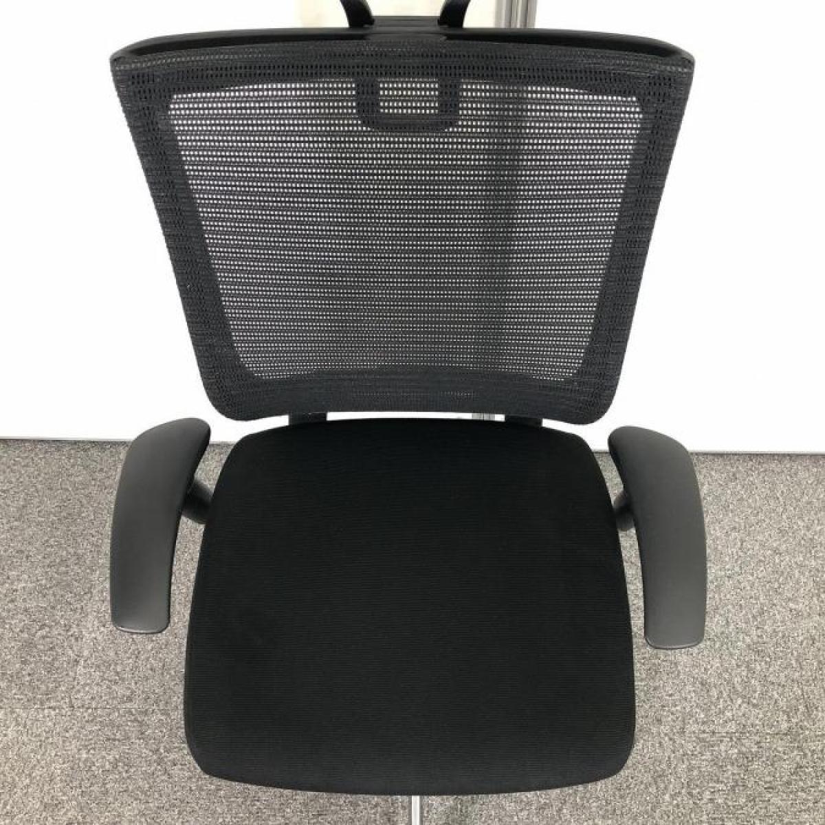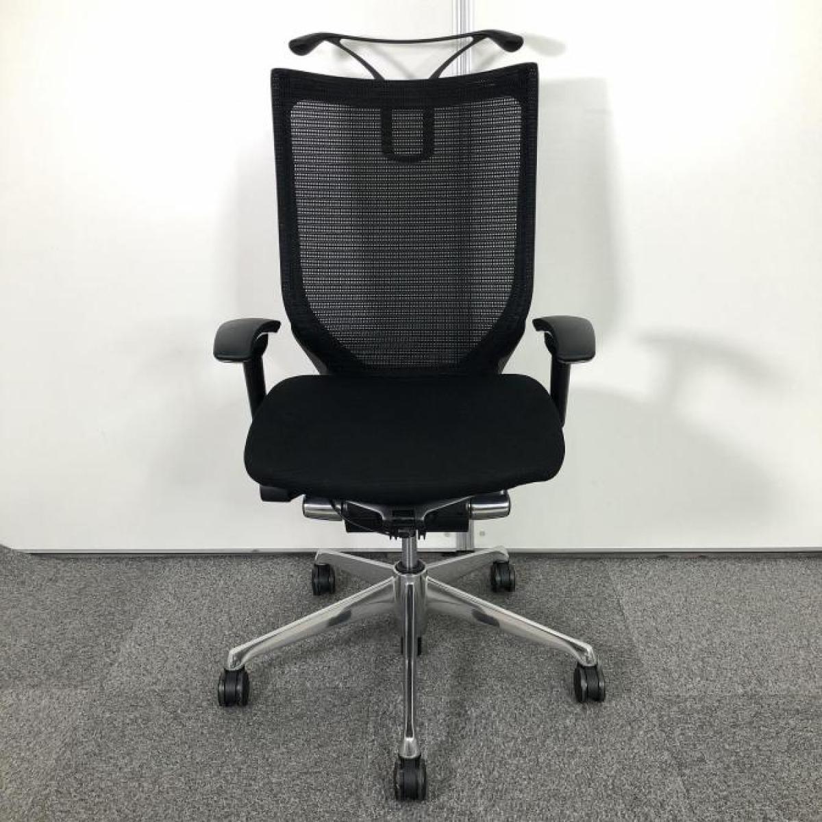 ■オカムラ(okamura)製 バロン(Baron)チェア 肘付き ハイバック ■背・座面メッシュ ■可動肘・ヘッドレスト付き ■ブラック【硬めの座面が大人気!国産メッシュチェアの代表格!】【弊社使用欄:A01042349 K】