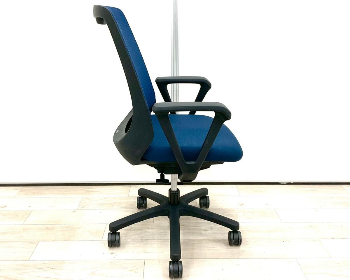 ★【K12】【T12】【商品入替のため、残り1脚限り】イトーキ製 ノナ ネイビーブルー ブラックフレーム 肘付き アジャスタブル※可動肘 ハイバック 背面メッシュ コートハンガー付 脚回りがコンパクトのため省スペースでも設置しやすい! 肘付きハイバックチェア