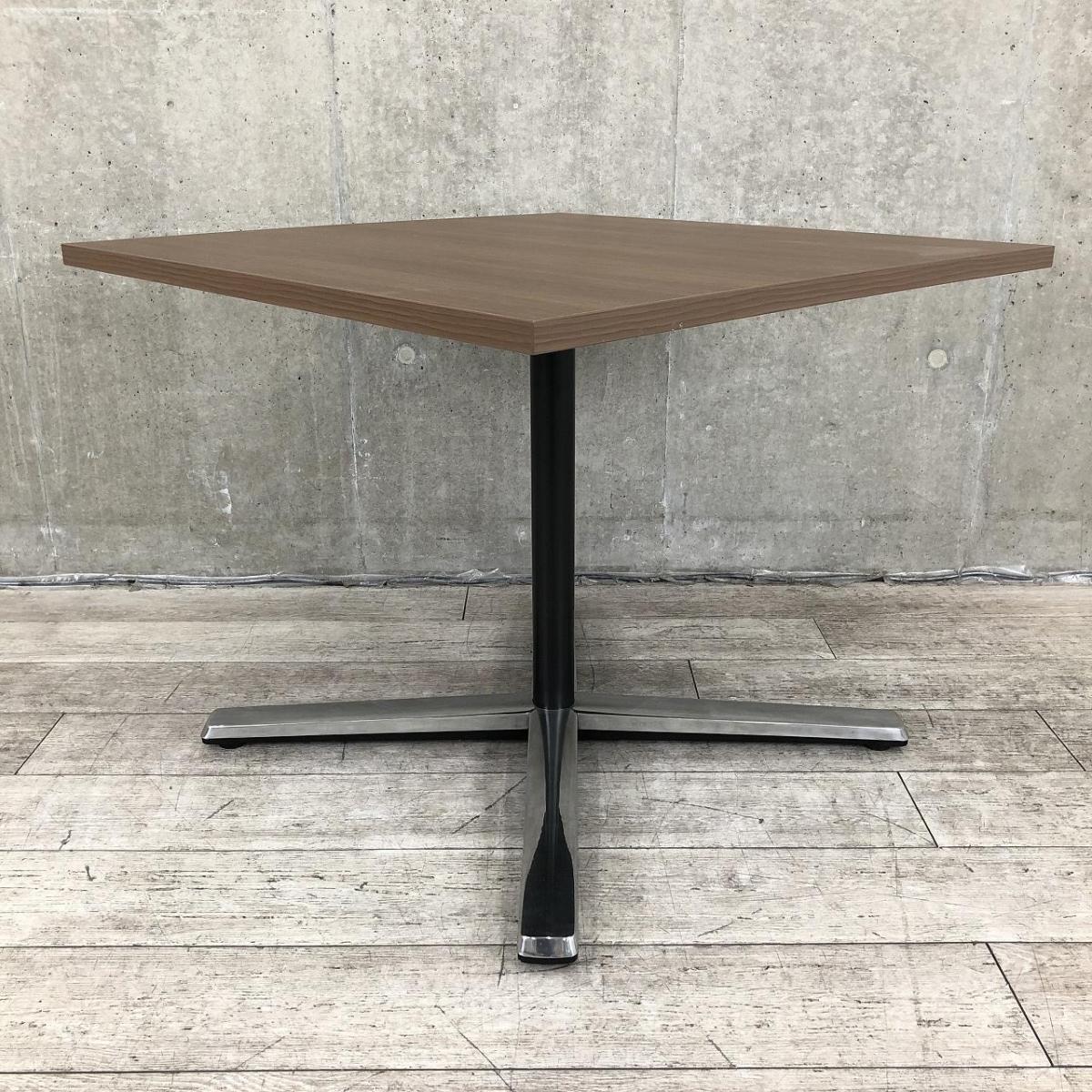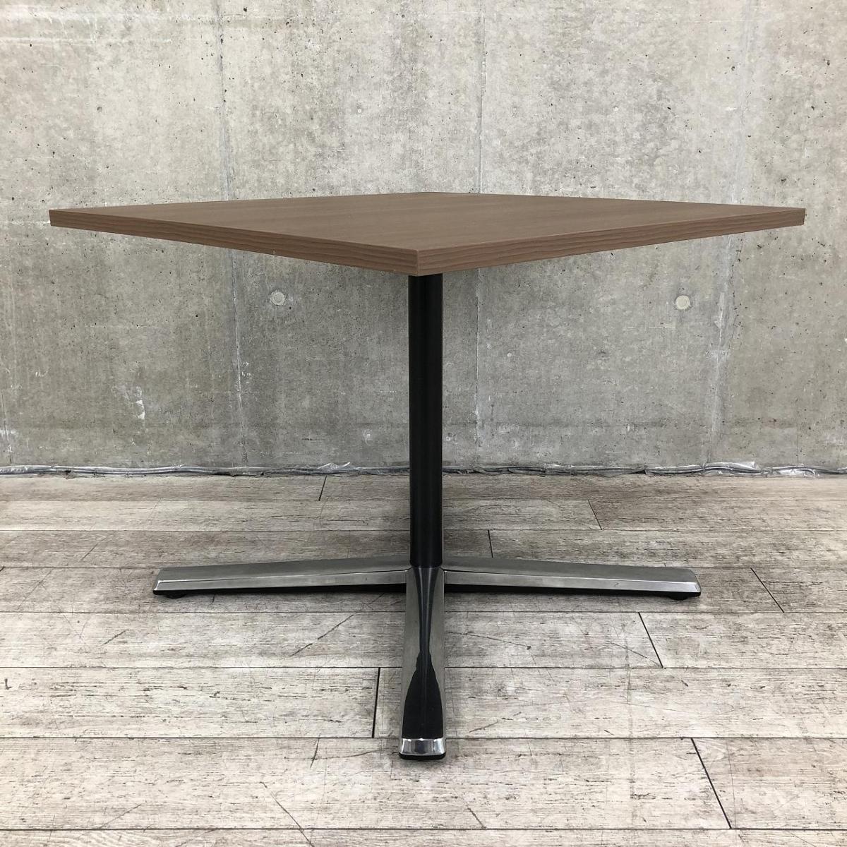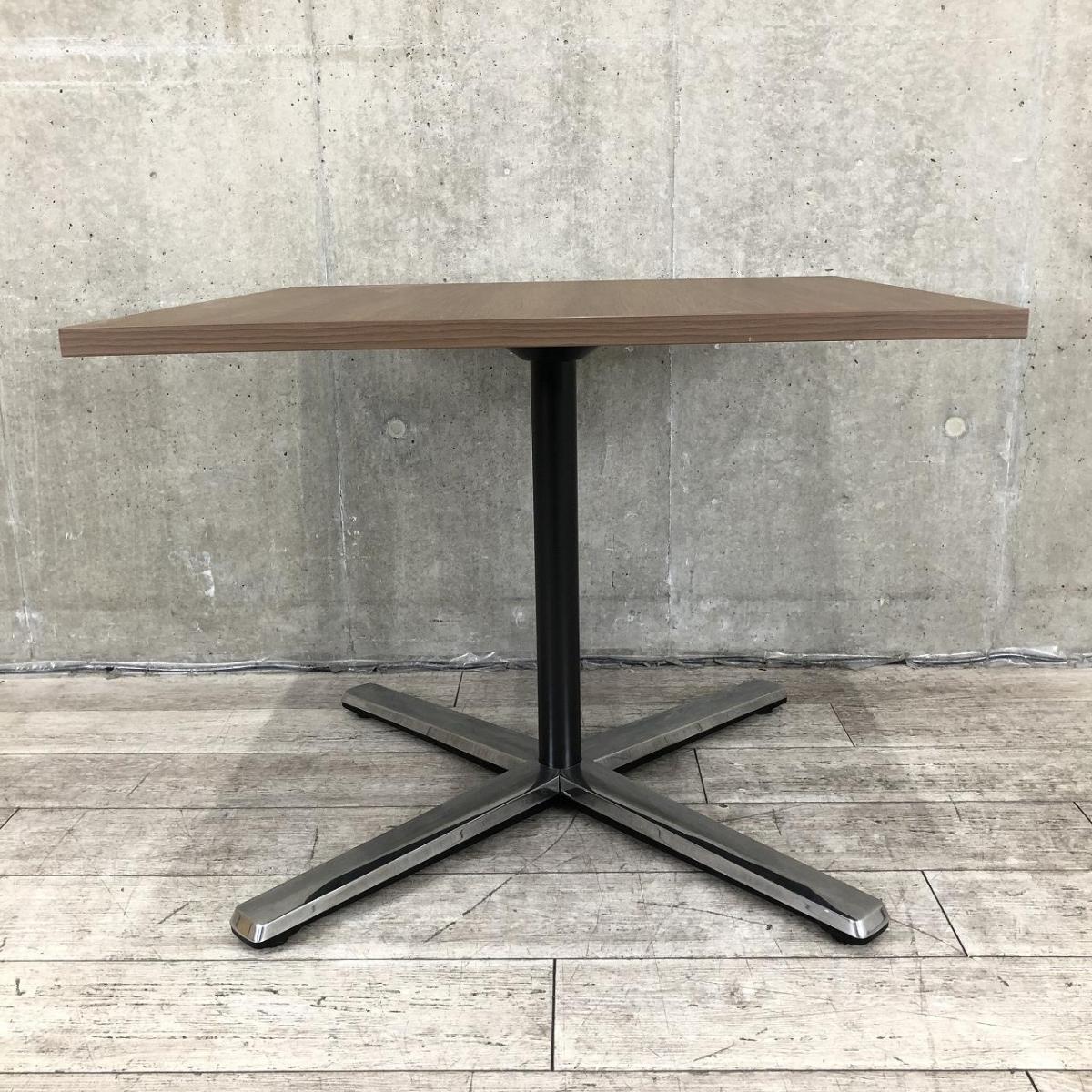 【在庫入替セール品】【ブラウン天板のカフェ風テーブル!リフレッシュスペースなどにおすすめ!】■オカムラ(okamura)製 ライブスシリーズ 角テーブル ミーティングテーブル カフェテーブル W900mm ■天板:木目ダーク/脚:ポリッシュ- 品川・三田店