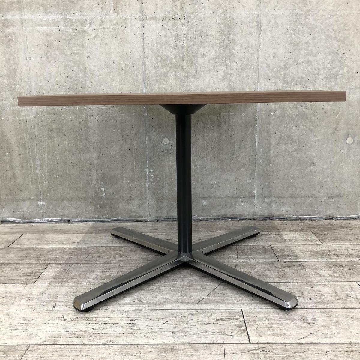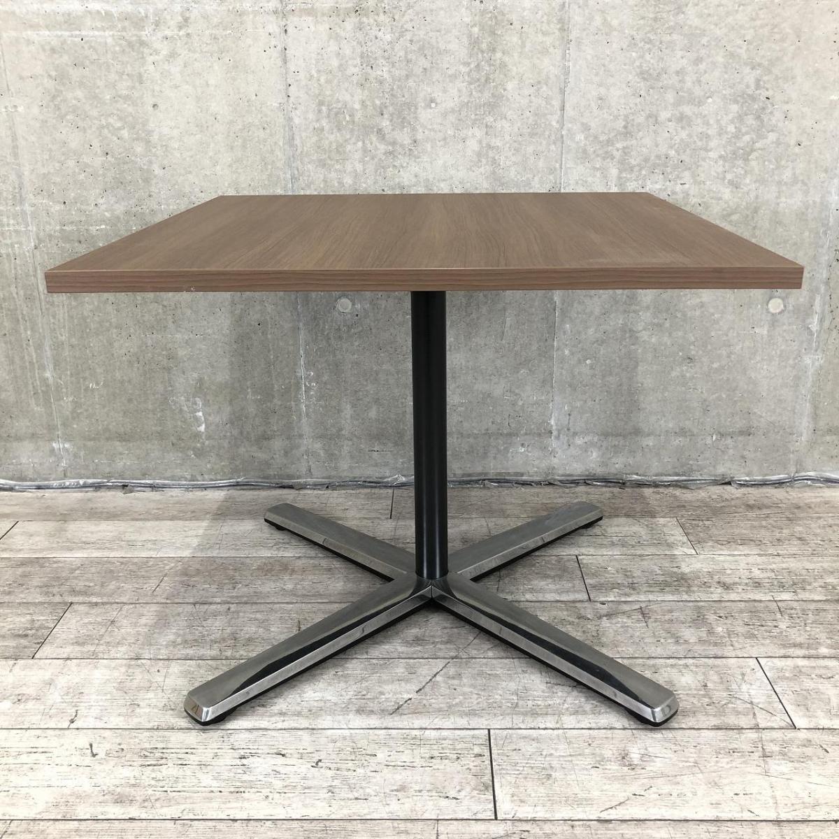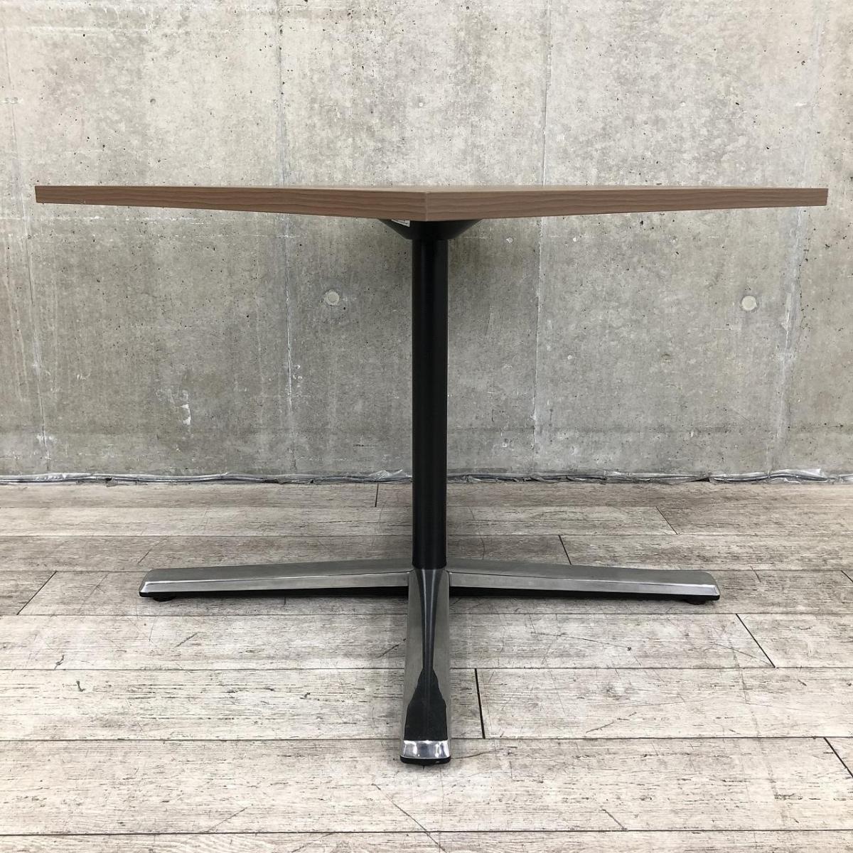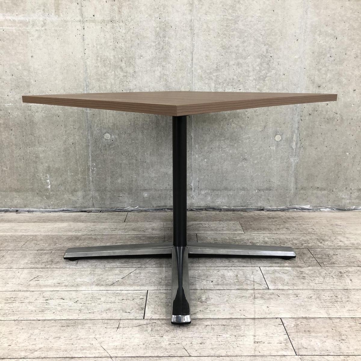 【在庫入替セール品】【ブラウン天板のカフェ風テーブル!リフレッシュスペースなどにおすすめ!】■オカムラ(okamura)製 ライブスシリーズ 角テーブル ミーティングテーブル カフェテーブル W900mm ■天板:木目ダーク/脚:ポリッシュ- 品川・三田店