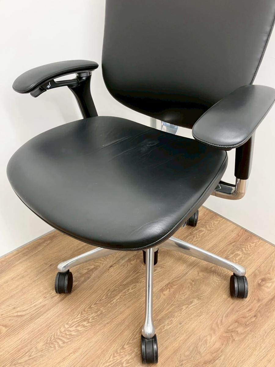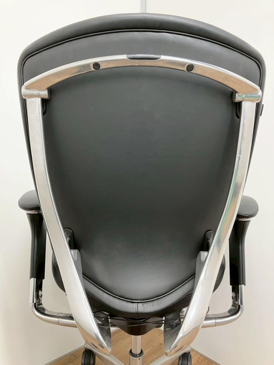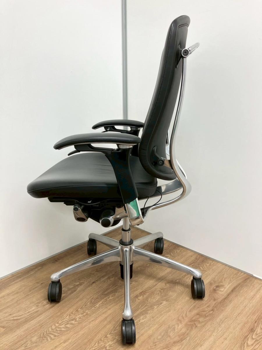 入替セール品につきお値下げ!【世界で認められた革新的タスクチェア!人間工学に基づいた快適な座り心地を実現!】オカムラ(okamura) コンテッサ (Contessa) 革張り ハイバック肘付き 可動肘 ブラック 【座面シワ・リクライニングロック解除時異音があるため、Bランク品】【現物画像】- 品川・三田店