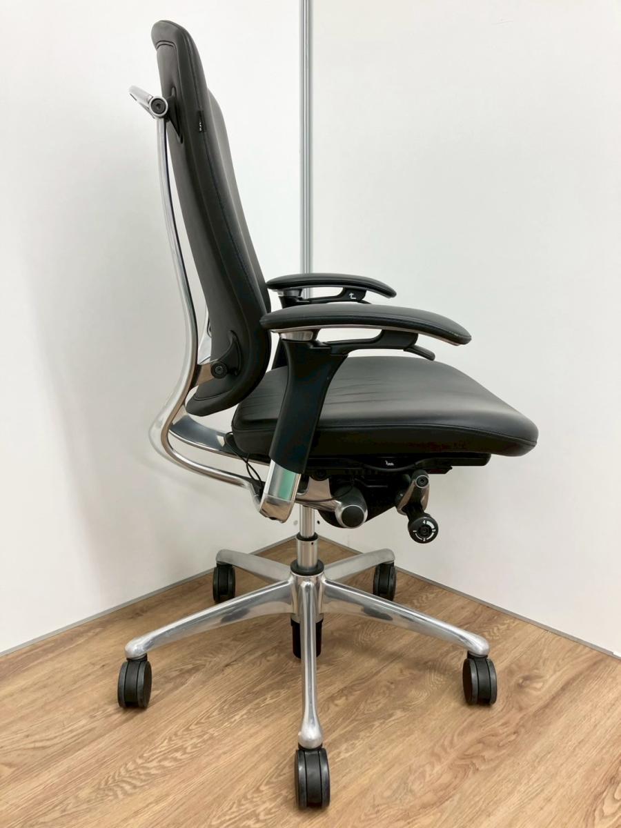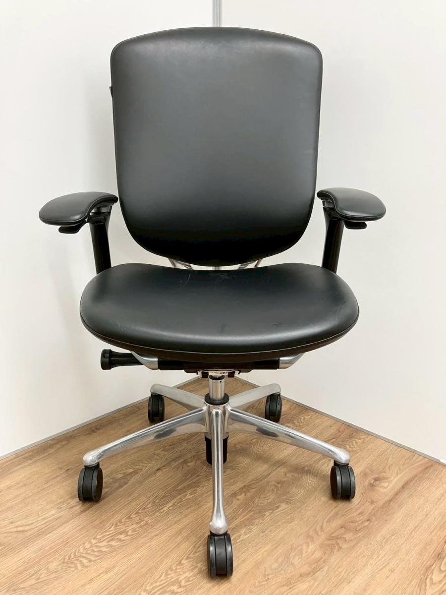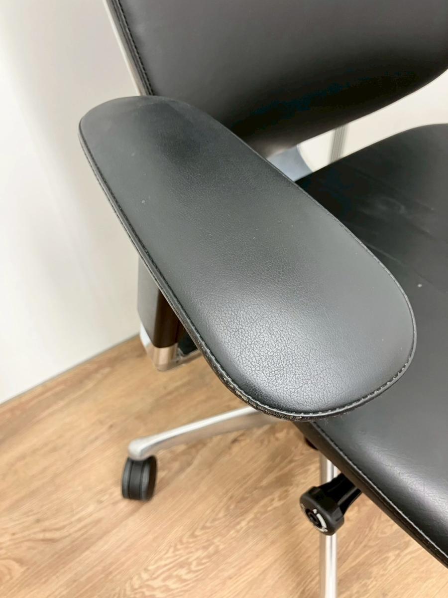 入替セール品につきお値下げ!【世界で認められた革新的タスクチェア!人間工学に基づいた快適な座り心地を実現!】オカムラ(okamura) コンテッサ (Contessa) 革張り ハイバック肘付き 可動肘 ブラック 【座面シワ・リクライニングロック解除時異音があるため、Bランク品】【現物画像】- 品川・三田店