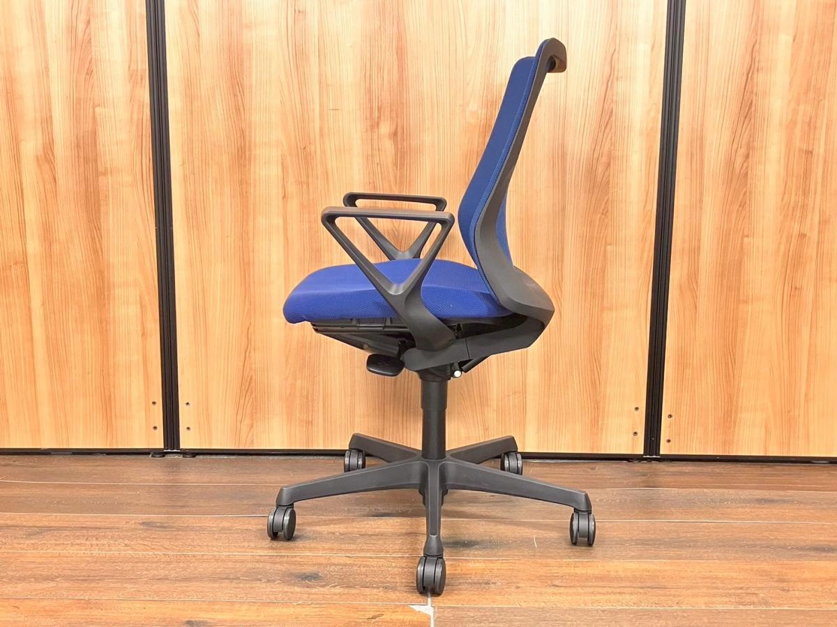 【背中を立体的に包み込む!】【シルフィの座り心地を低コストで再現!】■オカムラ(okamura)製 フルーエントチェア ローバック 肘無し ■背面メッシュ ■ミディアムブルー×ブラックシェル