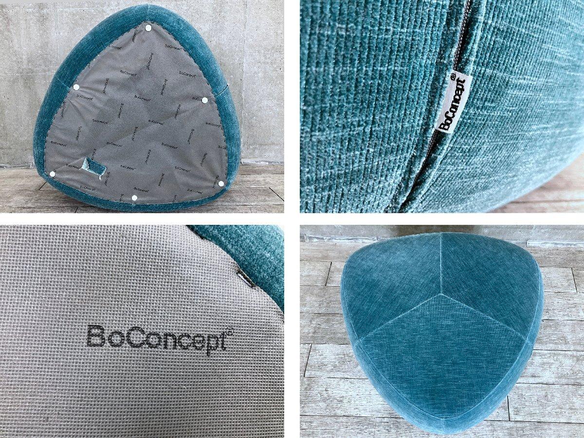 柔らかな曲線で構成された三角形フォルムが特徴で、空間に程よいリズムと遊び心をもたらします。サイズは幅約950mmと存在感がありながらも、角のない造形により圧迫感は控えめ。スツールやオットマンとしてはもちろん、ローシート感覚での使用やレイアウトのアクセントとしても活躍します。北欧らしいくすんだカラーリングは、落ち着きと温かみを兼ね備え、モダンからナチュラルまで幅広いインテリアに自然と溶け込む、BoConceptらしい洗練されたプロダクトです。