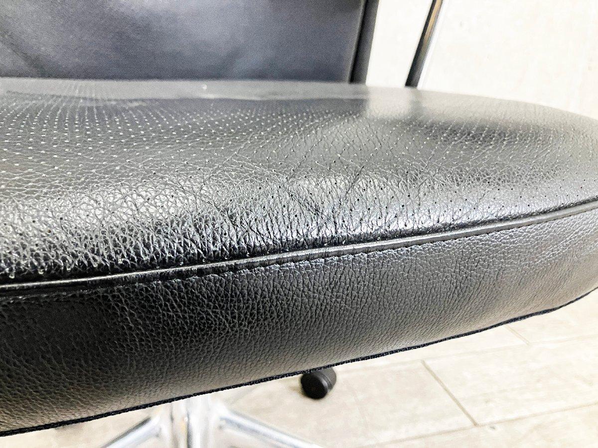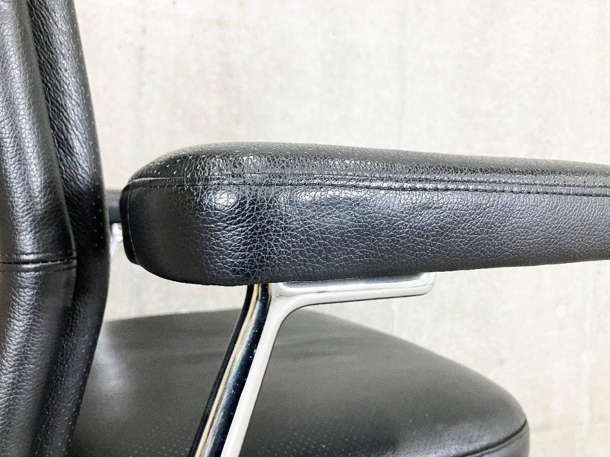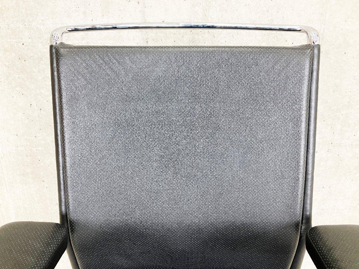 レザー張りの背・座がもたらす上質な座り心地と、クロームフレームの美しいラインが特徴のモデル。ミッドセンチュリーの空気を感じさせる端正な佇まいで、ワークスペースに落ち着いた存在感を与えます。