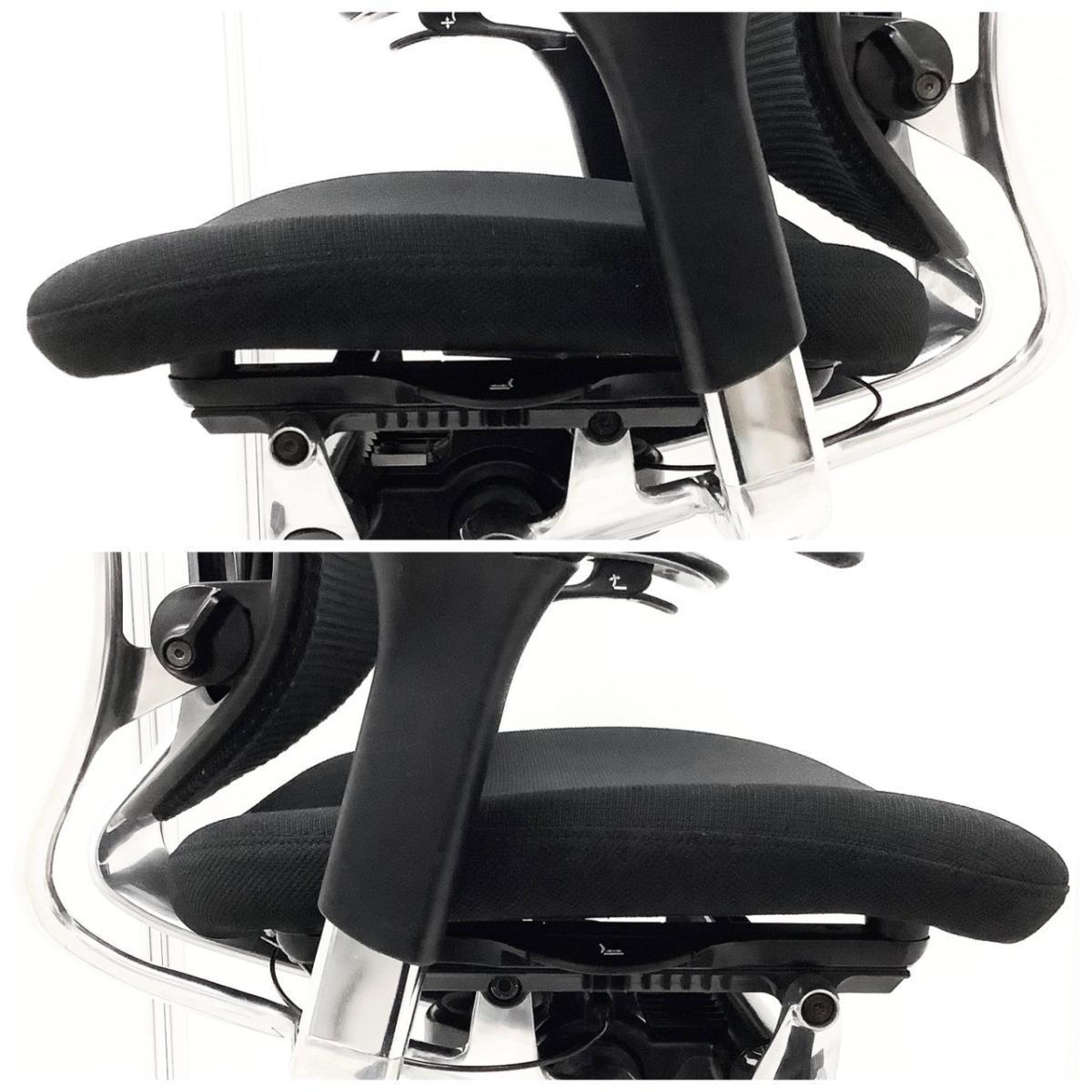 入替セール品につきお値下げ!【世界で認められた革新的タスクチェア!人間工学に基づいた快適な座り心地を実現!】オカムラ(okamura) コンテッサ (Contessa) 革張り ハイバック肘付き 可動肘 ブラック 【座面シワ・リクライニングロック解除時異音があるため、Bランク品】【現物画像】