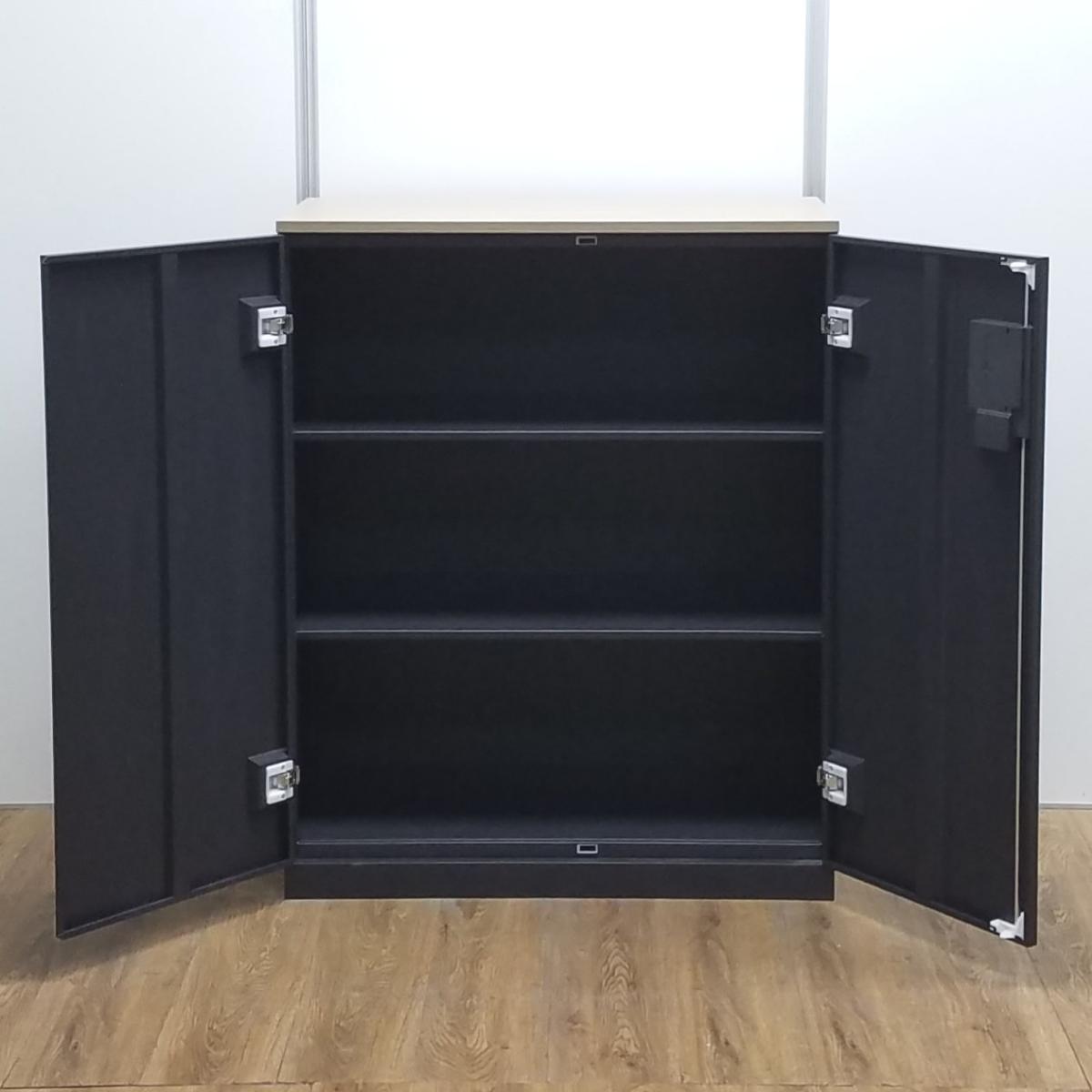 【12月上旬入荷予定】【関西倉庫在庫】イトーキ製 エスキャビネット ブラックカラー ナチュラル天板 室内をオシャレに! 両開き書庫!! 【弊社使用欄:】