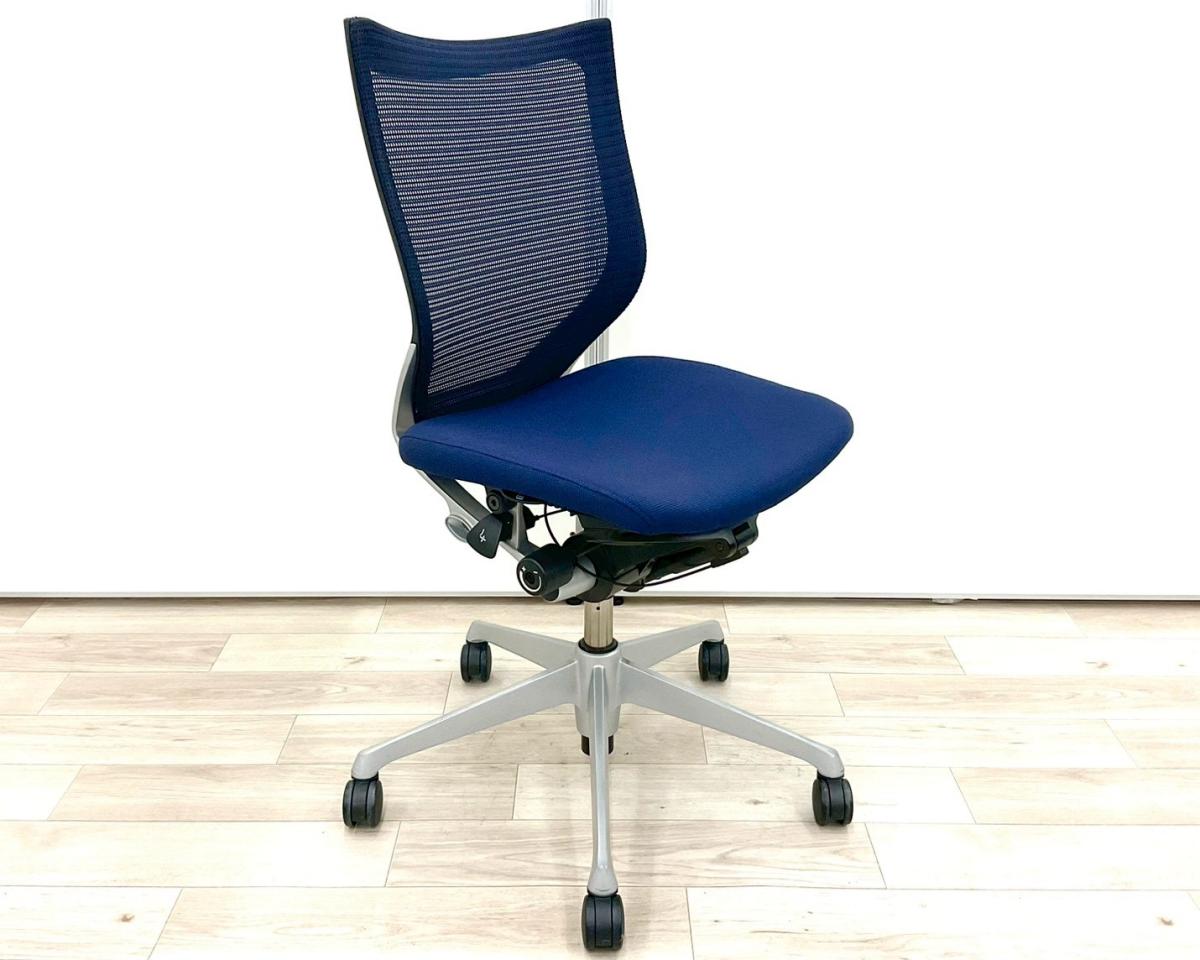 【長時間のデスクワークを快適にサポート!】■オカムラ(okamura)製 バロン(Baron)シリーズ 肘無ローバック ■ブルー