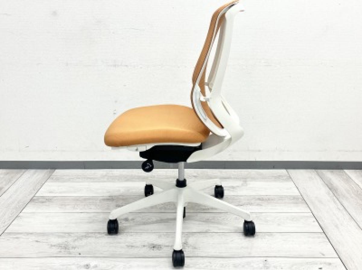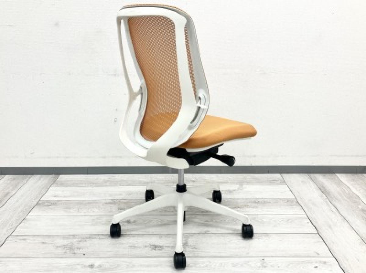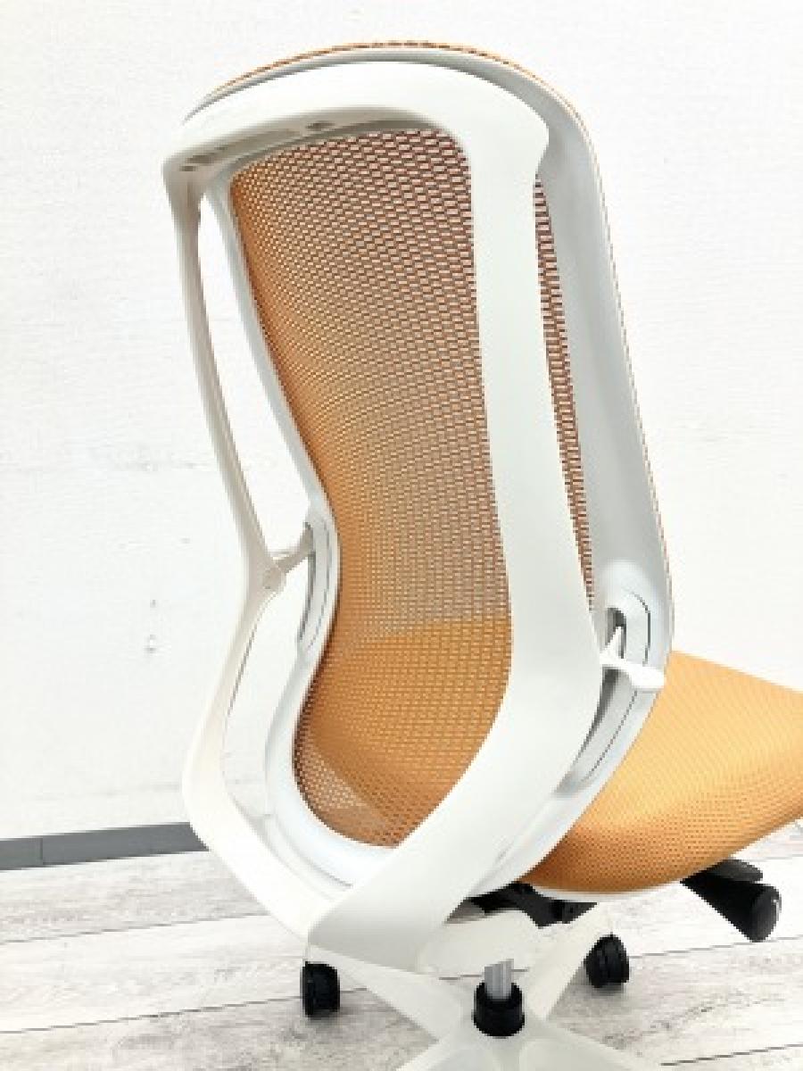 ★オカムラ製 シルフィ オレンジ ホワイトフレーム 肘無し ハイバック 背面メッシュ 前傾チルト機能付き! オカムラ製品で最も人気を集める高機能メッシュチェア! 肘無しハイバックチェア!!