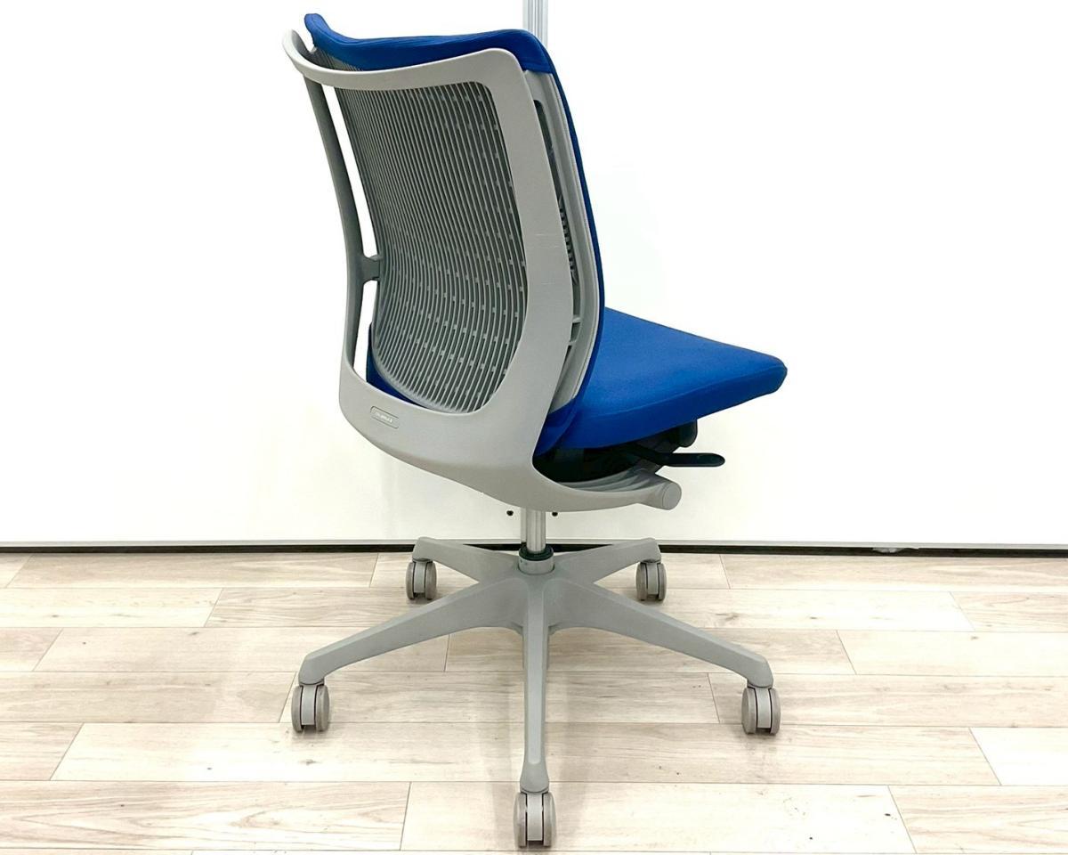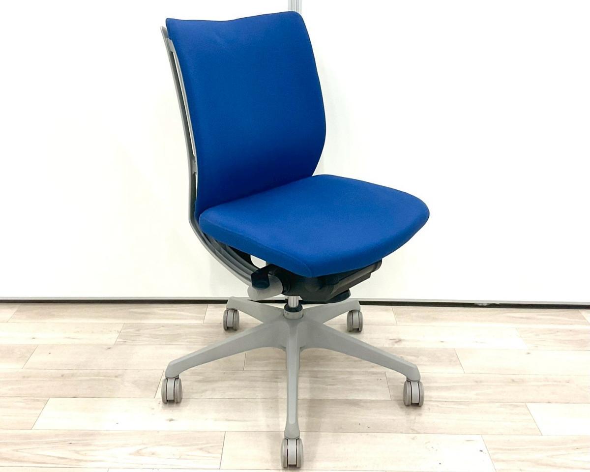 【T11】【T9】【座面スポンジ劣化】オカムラ製 ヴィスコンテシリーズ ミディアムブルー クッションタイプ 高いデザイン性と快適なクッション性が人気のOAチェア! 肘無しハイバックチェア!!
