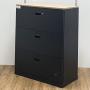【フラットで美しい!珍しいブラックカラーにオシャレなナチュラル天板!】■イトーキ製(ITOKI)製 エスキャビネット(eS) 3段ラテラル ローキャビネット H1130㎜ ■ブラック /天板:木目調ナチュラル ■シリンダー錠