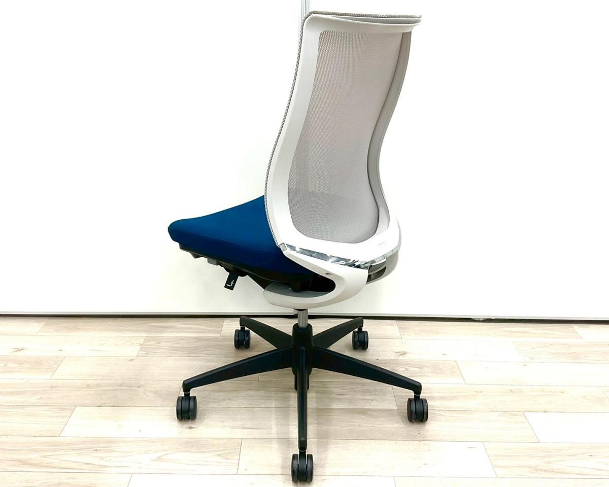 【前傾から後傾まで様々な姿勢をサポート!ワンランク上の座り心地!】■コクヨ(KOKUYO)製 ベゼル(Bezel)チェア 肘無 ハイバック モデレートタイプ 背面メッシュ ■プルシアンブルー×ホワイトシェル×脚ブラック