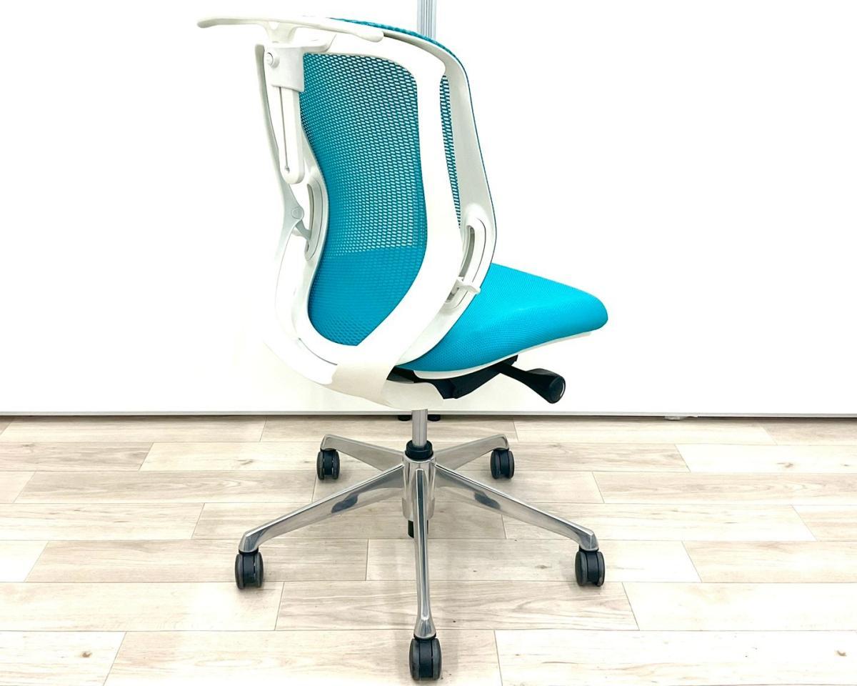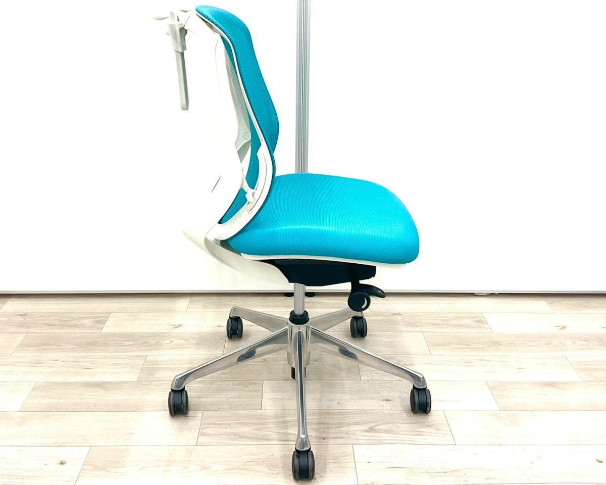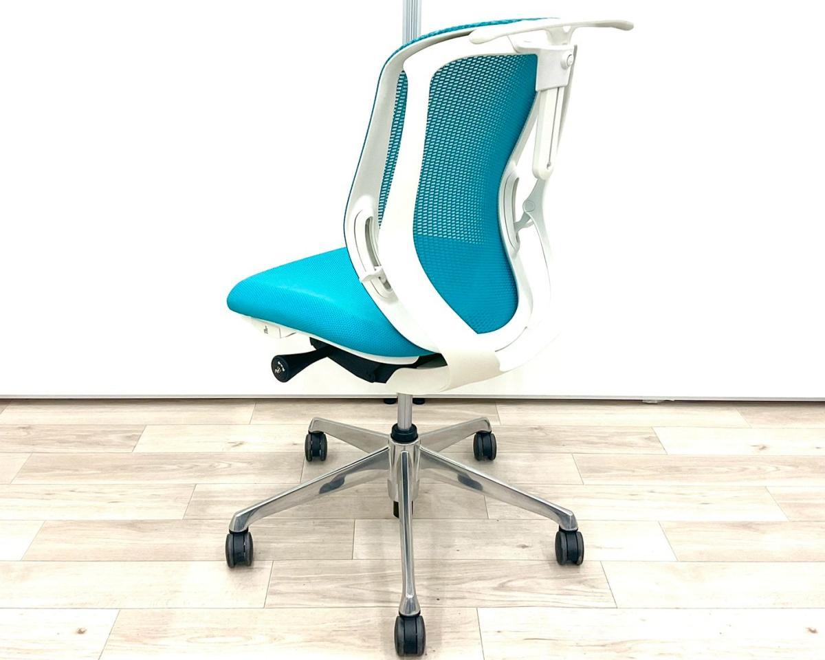 【前傾機能チェアの代名詞!大人気シルフィーチェア!】■オカムラ(okamura))製 シルフィー(Sylphy)チェア 肘無し ローバック 背面メッシュ ■ブルーグリーン×ホワイトシェル ■コートハンガー付き 【弊社使用欄:A01048227】【KN】
