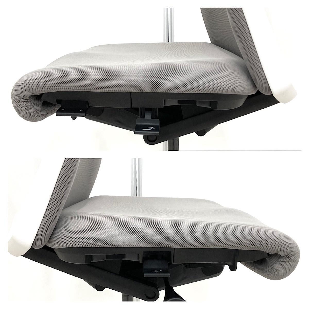 また、個人的にオススメなのは『フルアジャスタブル肘』というアーム部分が斜め前に伸びていくタイプの肘置きを搭載したモデルです。高さを上げれば上げるほどパッドが前方に迫り出していくので、デスクワークの際にちょうど肘を置きたい場所に肘置きがきます。これがとても快適なので、ぜひ一度お試しいただきたいです!*エルフィチェアの肘パーツはフルアジャスタブル肘の他に、固定肘、アジャスタブル肘などがあります。