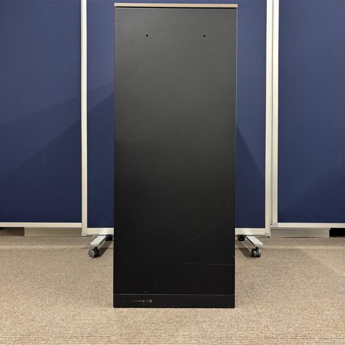 オフィス空間をスマートに整える、ブラックスチール製スライド書庫。