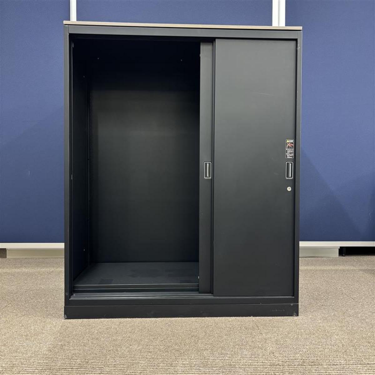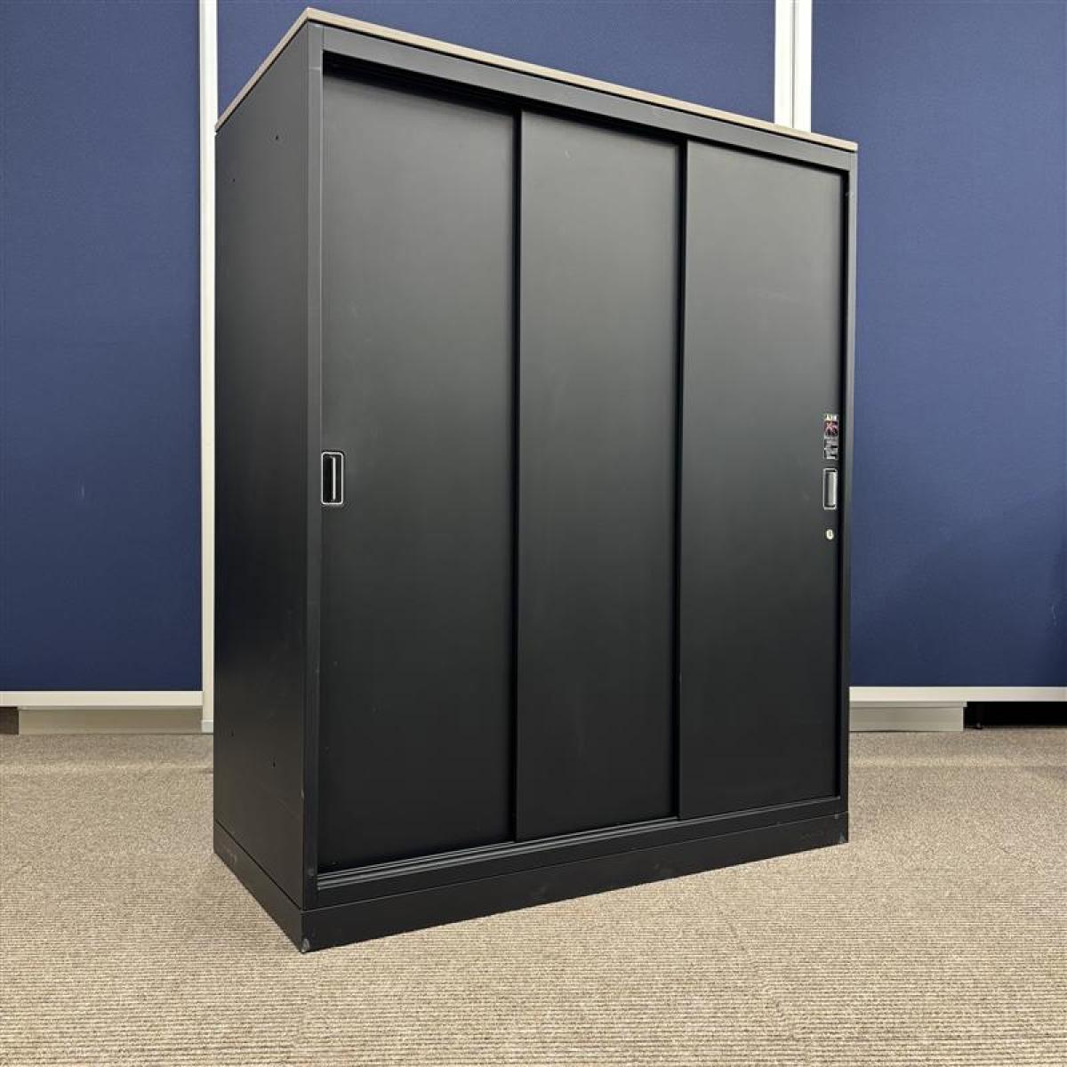 【西】~省スペースにしっかり収納!~【イトーキ】【エスキャビネット】【引き違い書庫】【3枚扉】【ブラック】【天板/ナチュラル】 【チェア】【椅子】【イス】【事務椅子】【デスク】【机】【書庫】【書棚】【棚】【ラック】【収納】【格安】【安い】【メーカー】【レイアウト変更】【模様替え】- 福岡西店