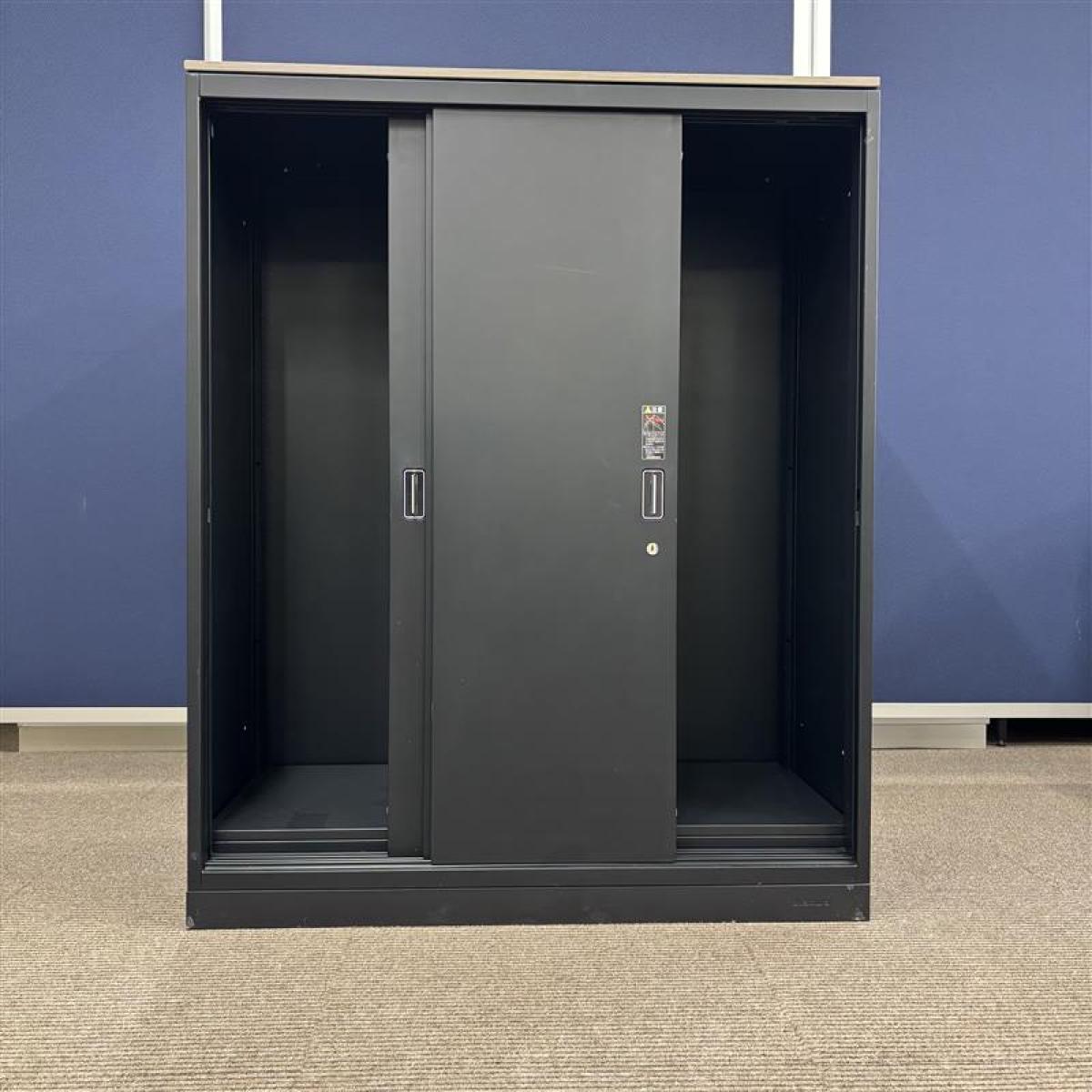 【西】~省スペースにしっかり収納!~【イトーキ】【エスキャビネット】【引き違い書庫】【3枚扉】【ブラック】【天板/ナチュラル】 【チェア】【椅子】【イス】【事務椅子】【デスク】【机】【書庫】【書棚】【棚】【ラック】【収納】【格安】【安い】【メーカー】【レイアウト変更】【模様替え】