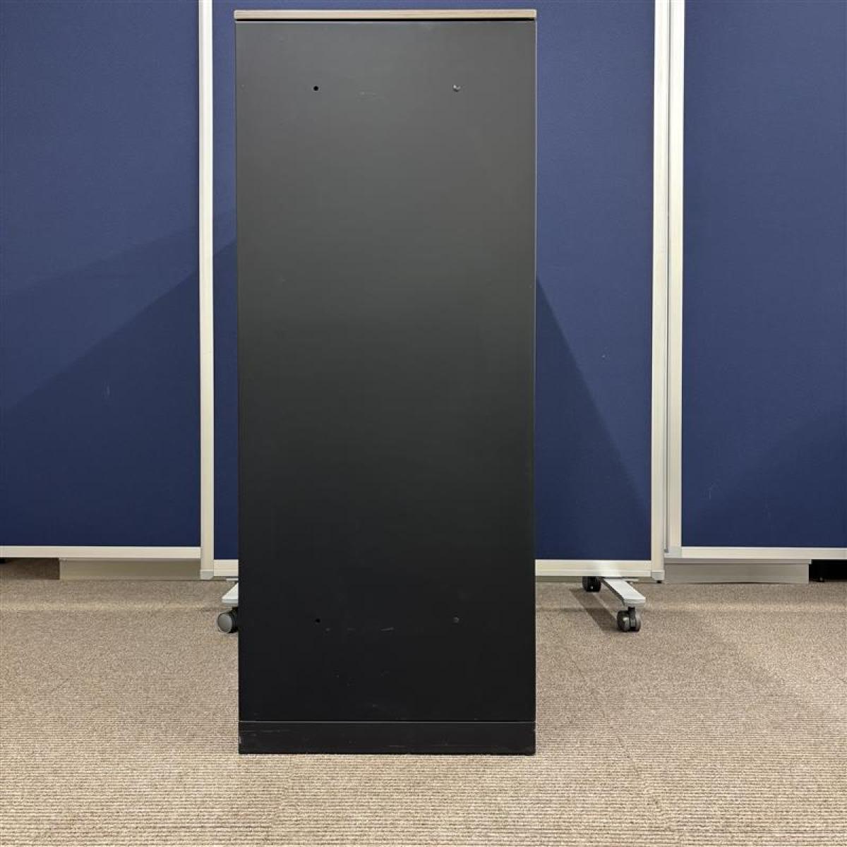 オフィス空間をスマートに整える、ブラックスチール製スライド書庫。