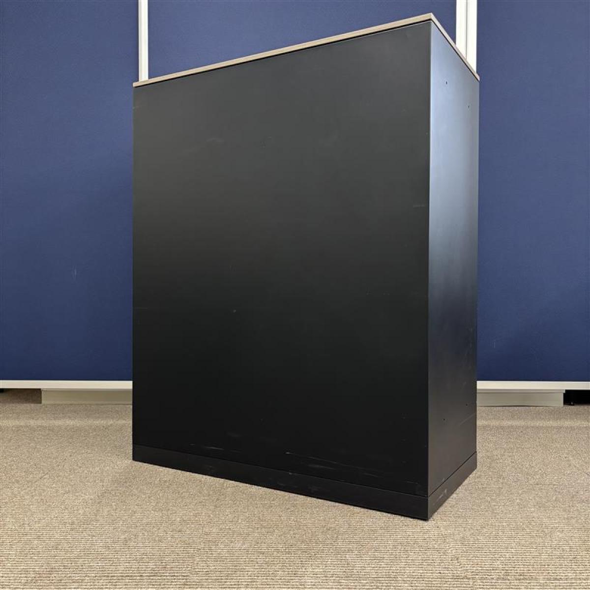 ★イトーキ製 エス(eS)キャビネット ブラック 2枚扉 シリンダー 木目ナチュラル天板付 フラットで美しい! お問い合わせの多い引違い書庫! スライド引き戸だから開閉スペースに困りません! ローキャビネット 引き違い書庫!!