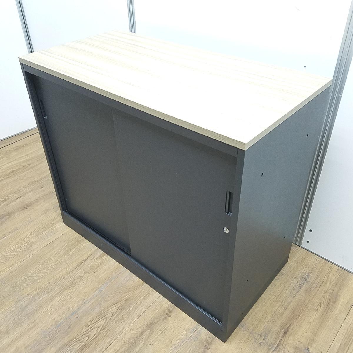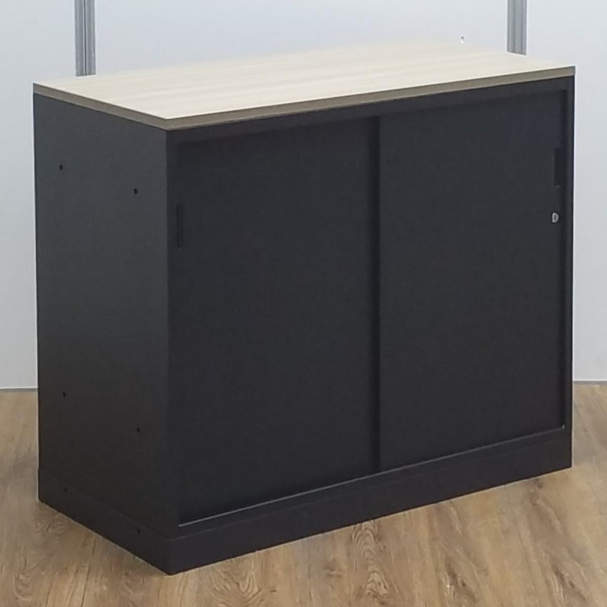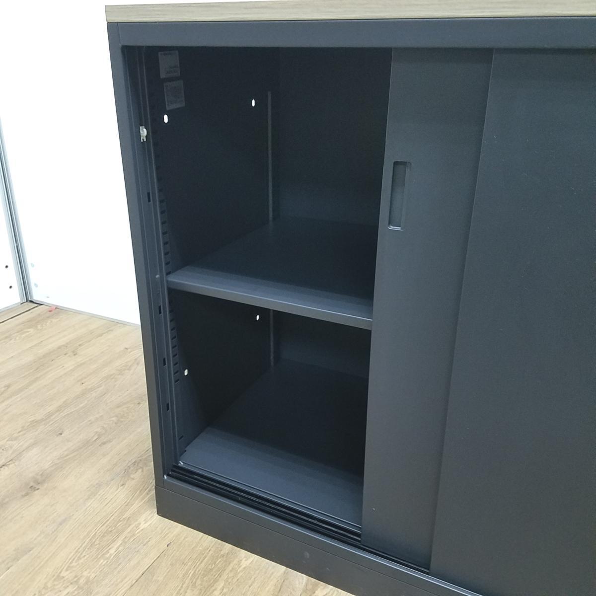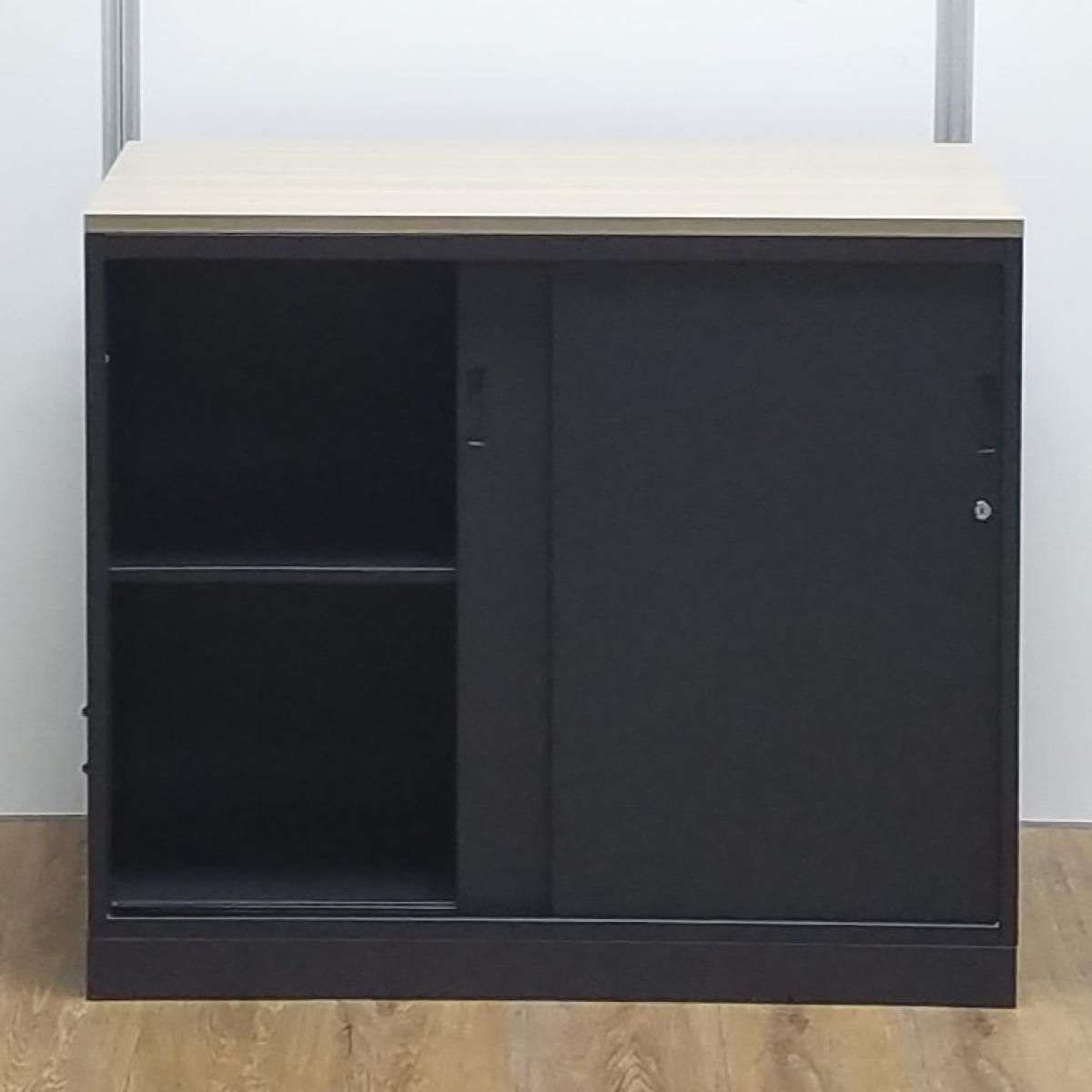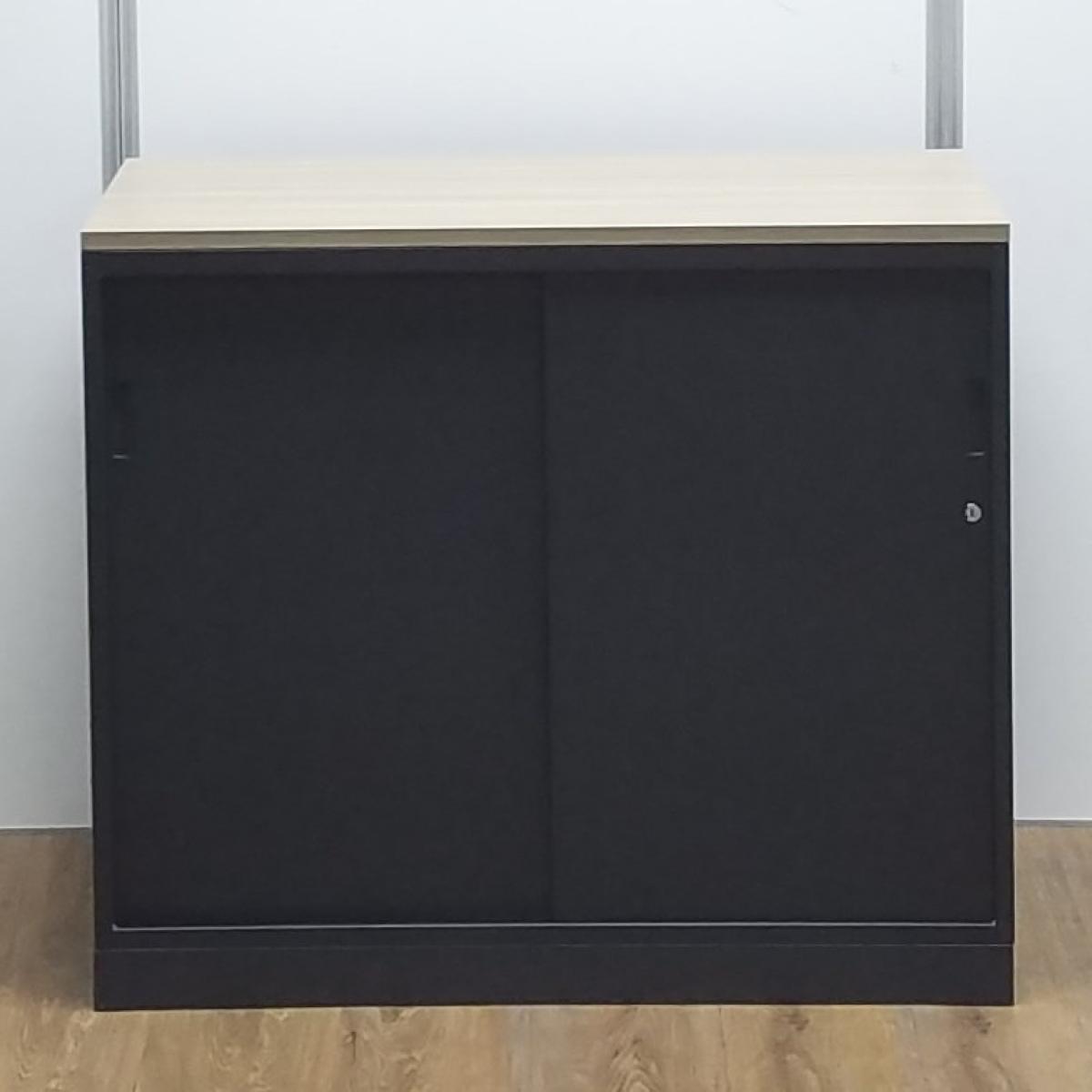 ★イトーキ製 エス(eS)キャビネット ブラック 2枚扉 シリンダー 木目ナチュラル天板付 フラットで美しい! お問い合わせの多い引違い書庫! スライド引き戸だから開閉スペースに困りません! ローキャビネット 引き違い書庫!!- 京都東寺店