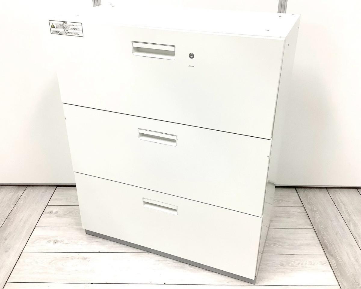 【A4ファイルの収納に最適!引き出し式キャビネット!】■プラス(PLUS) L6シリーズ 3段ラテラル ローキャビネット ■ホワイト ■シリンダー錠