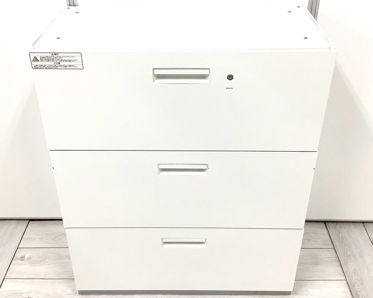 【汎用性抜群の大容量書庫!抜群の収納力で書類をスッキリ整理!】■プラス(PLUS)製 L6シリーズ 3段ラテラル ローキャビネット W900×D450㎜ ■ホワイト ■シリンダー錠
