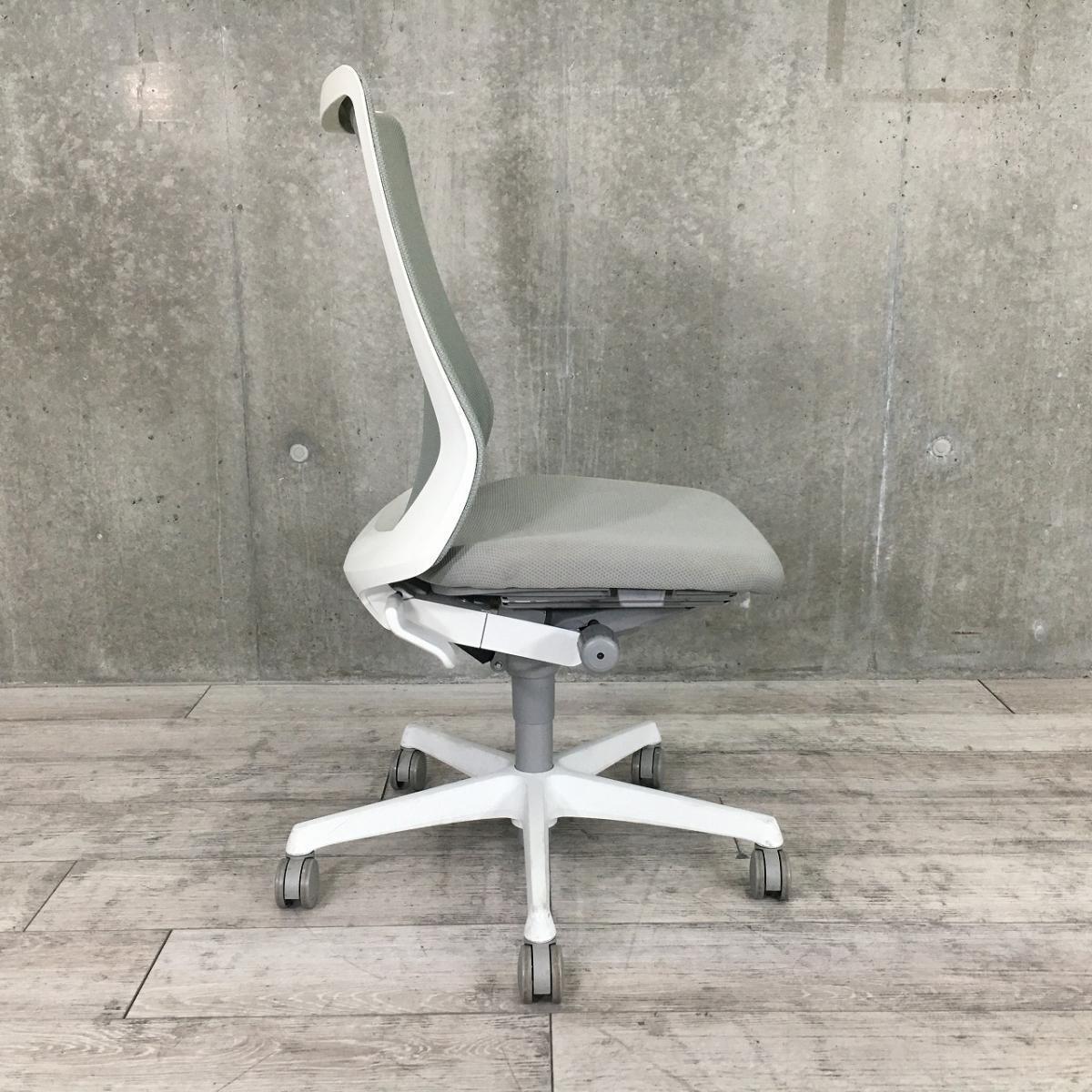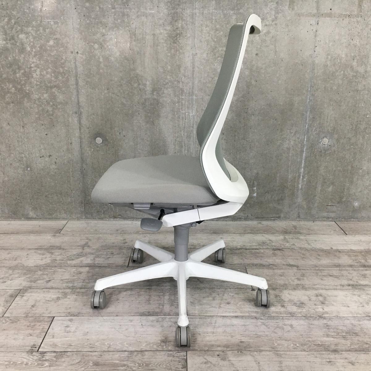 【腰まわりをしっかりホールド!長時間作業も快適フィット!】■オカムラ(okamura)製 フルーエントチェア(Fluent) ハイバック 肘無し ■背面メッシュ ■ライトグレー×ホワイトシェル