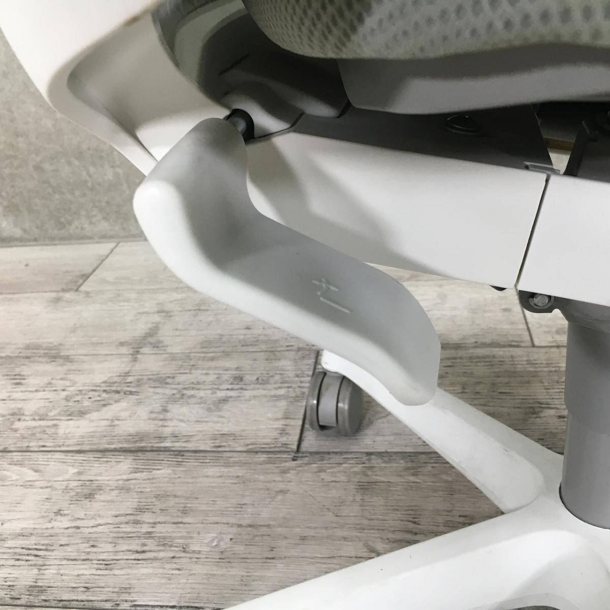 - 基本的な、高さ調節、リクライニング機能に加え、肘掛の高さ、肘あての前後・角度調節、座面奥行き調節など充実の機能を搭載。