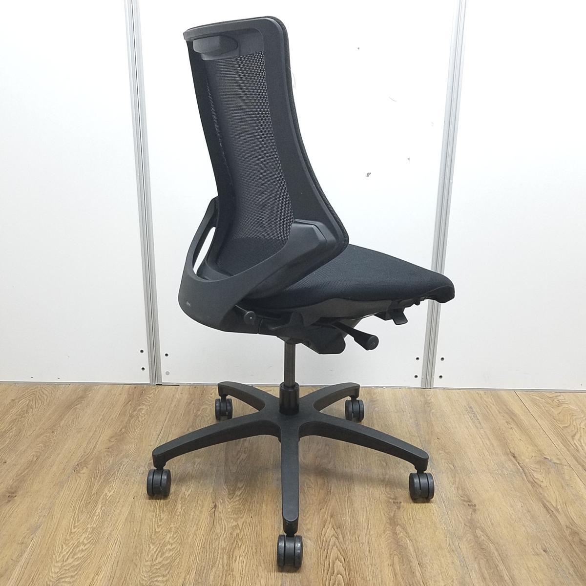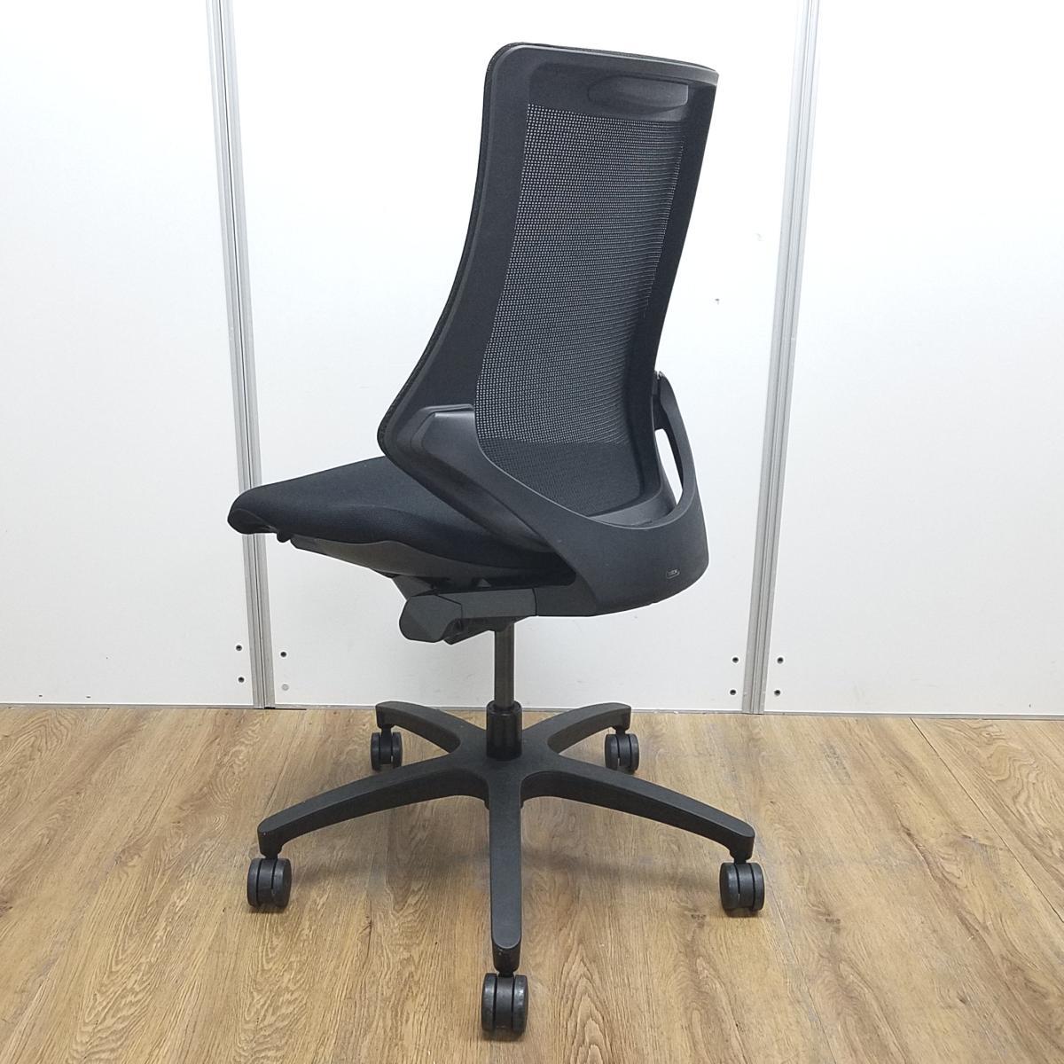 【肩から腕を開放する美しいフォルム!】■イトーキ製 エフチェア ブラック 背面メッシュ ■姿勢の変化にフレキシブルに対応!【ITOKI fチェア】- 川崎店
