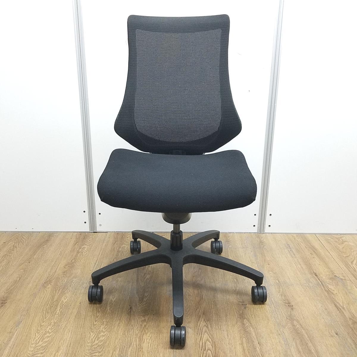 ※状態イマイチ!背メッシュに破れあり!上下昇降ガス弱め! ■イトーキ エフチェア ブラック 背面メッシュ ■姿勢の変化にフレキシブルに対応!【ITOKI fチェア】★