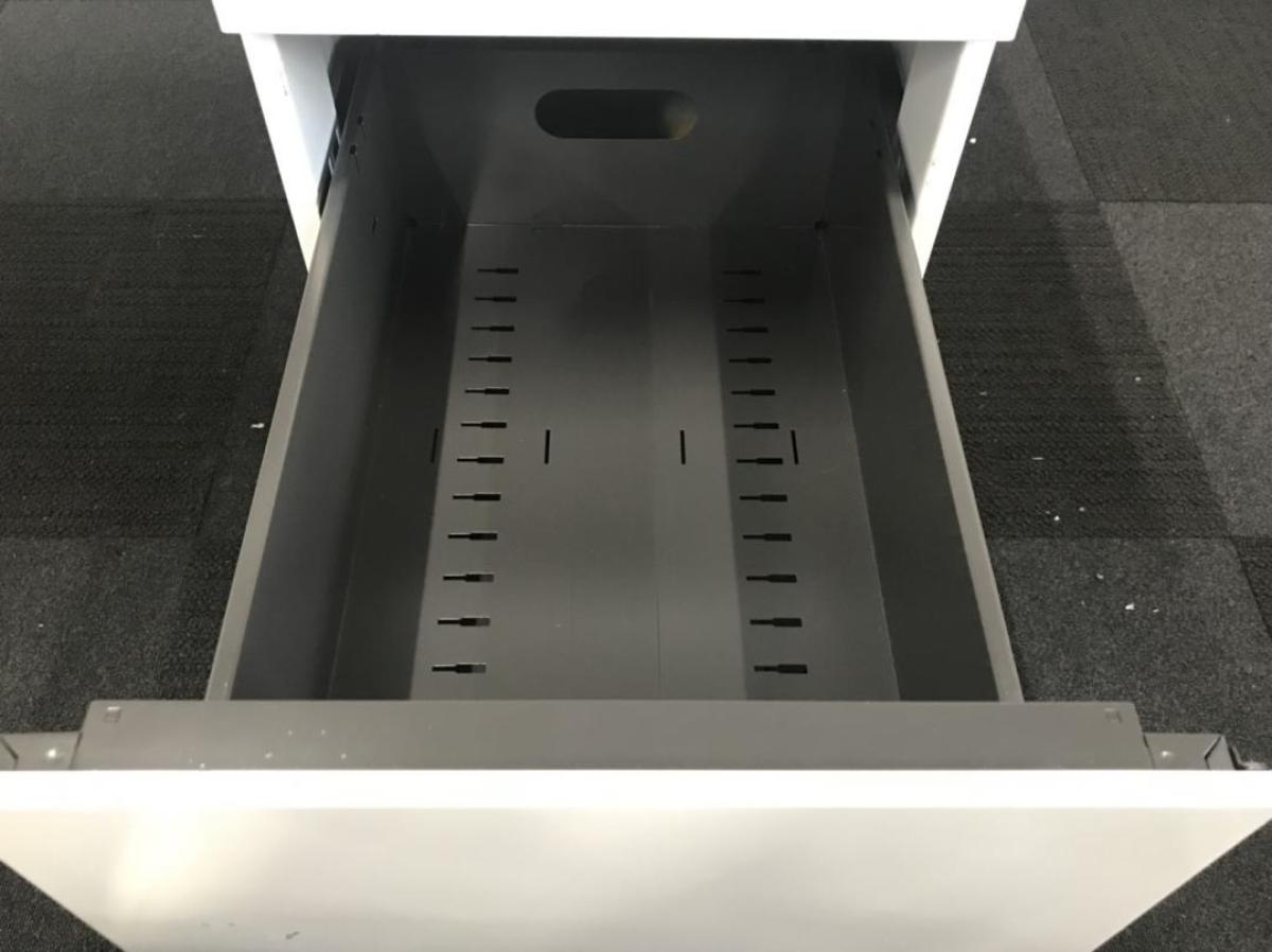 引出しの前面はフラットフェースになっており、サイドのラッチで開閉操作ができます。