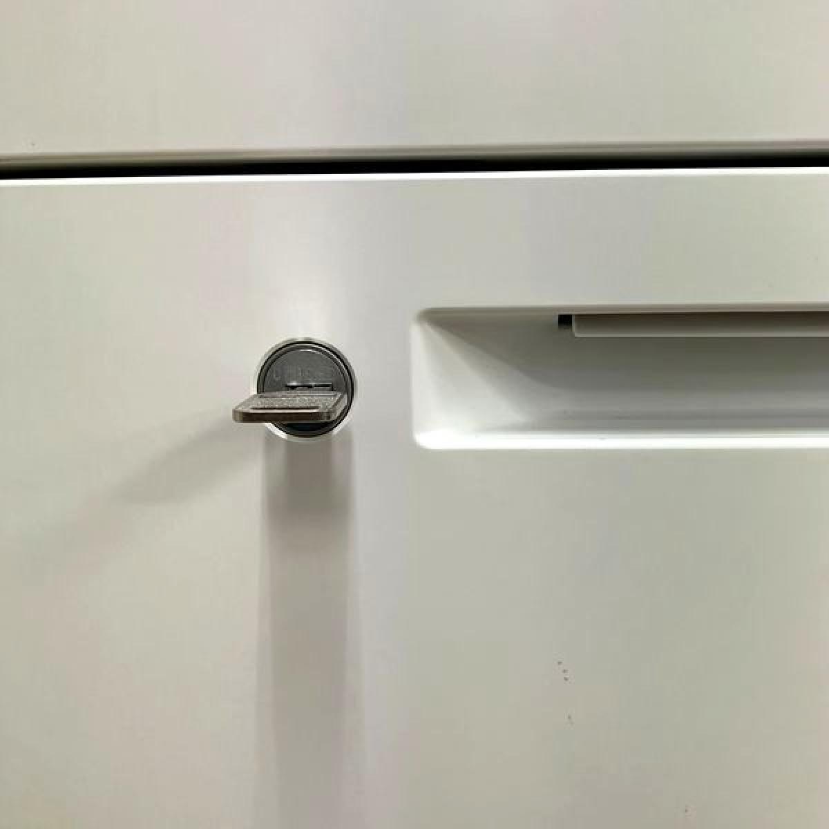 袖引き出しはペントレー×1段 A4×2段 鍵はオールロックタイプ