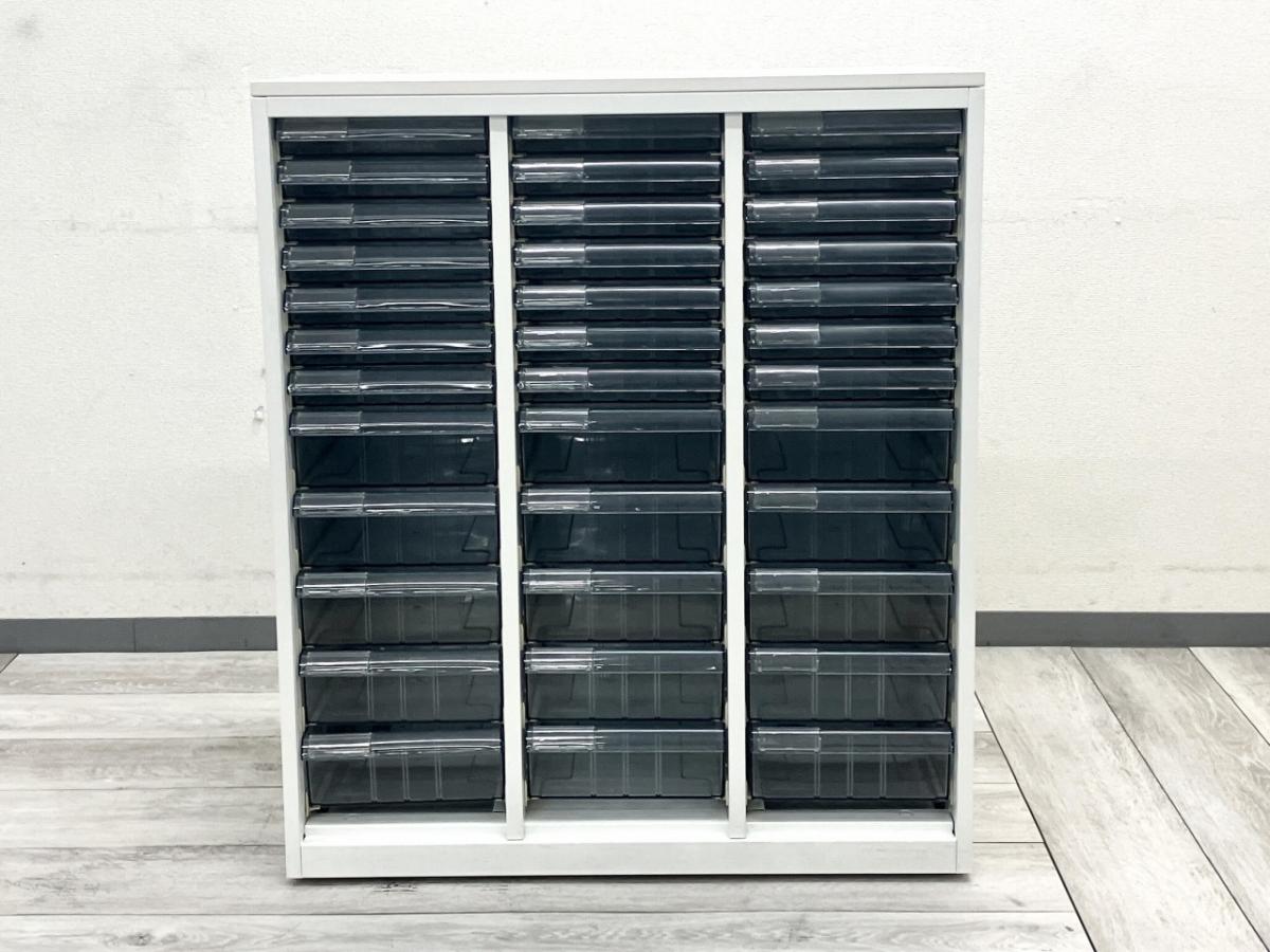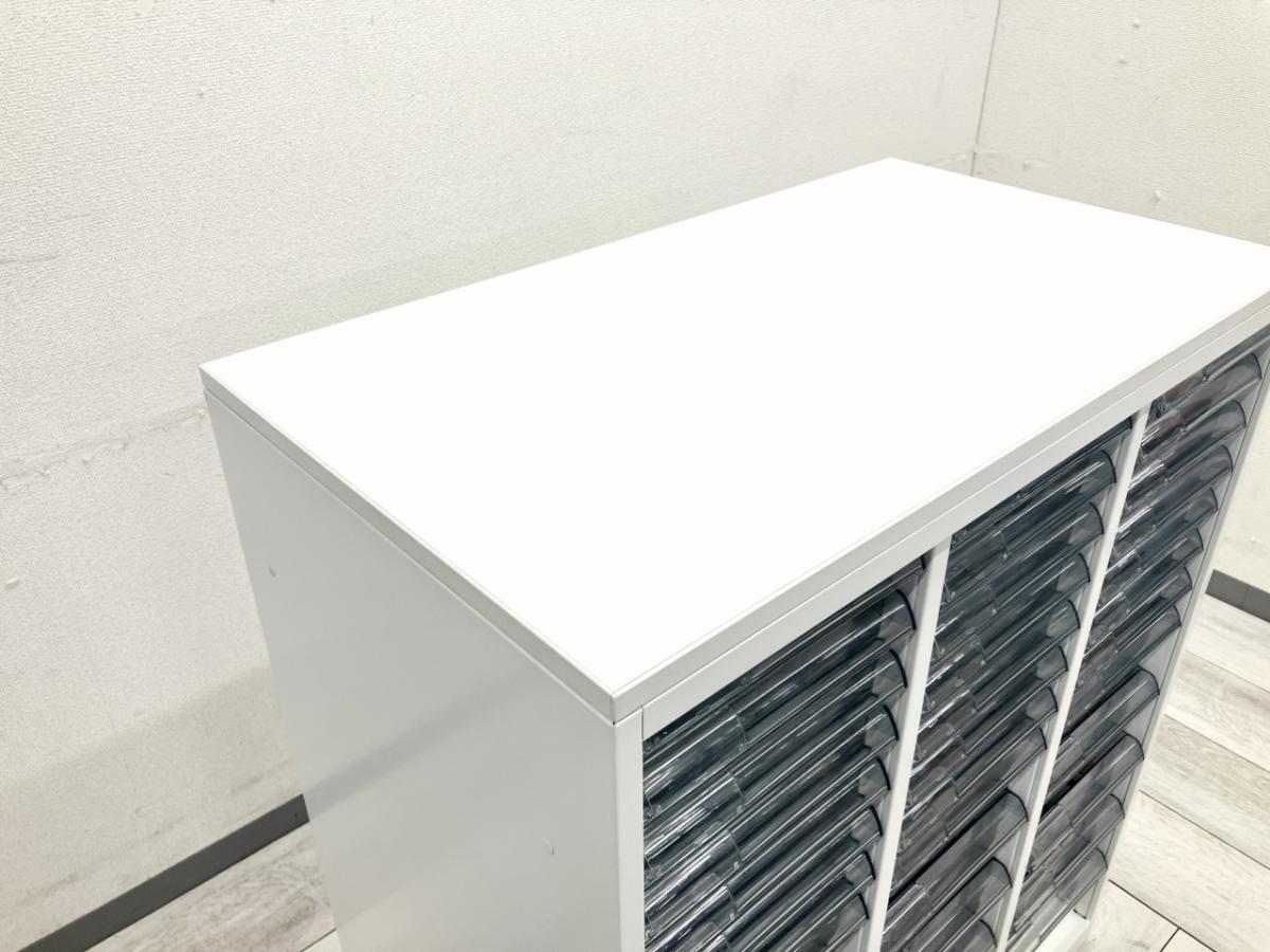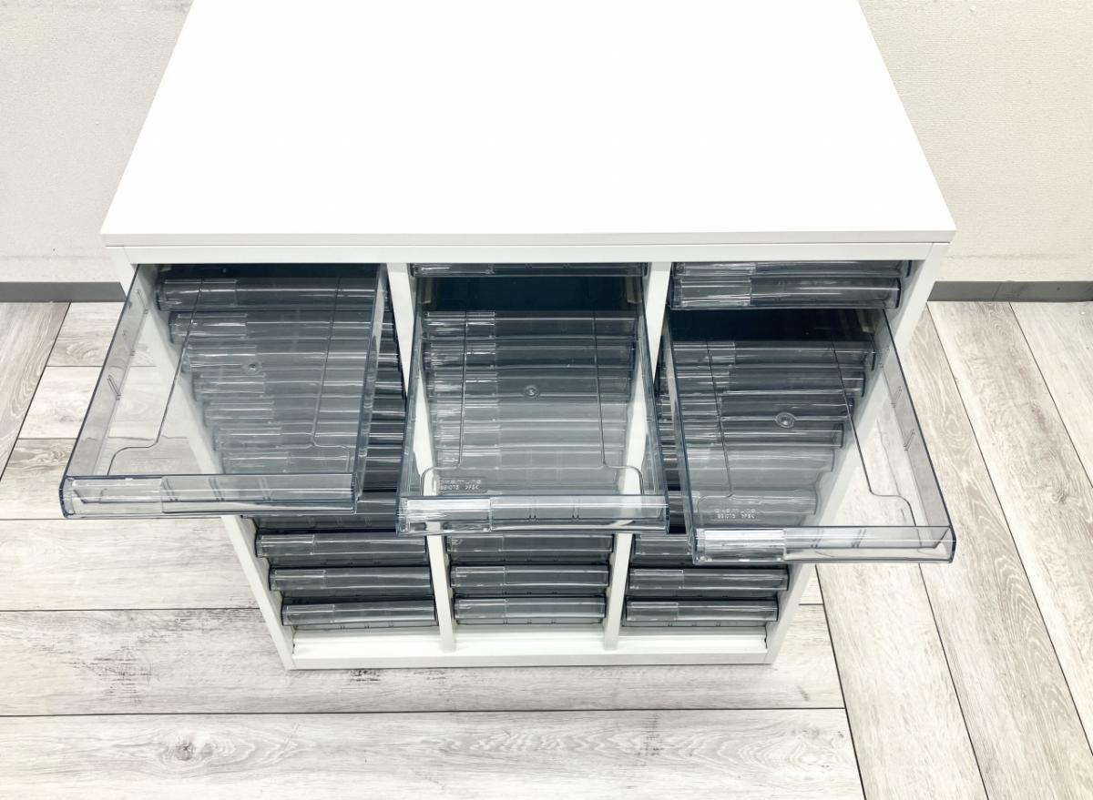【書類・備品整理の必需品!珍しいクリトレが入荷!収納力抜群!】■コクヨ(KOKUYO)製 レクトラインシリーズ クリスタルトレイ ローキャビネット ■W900×D500H1100㎜ ■3列×深型12段 ■ホワイト