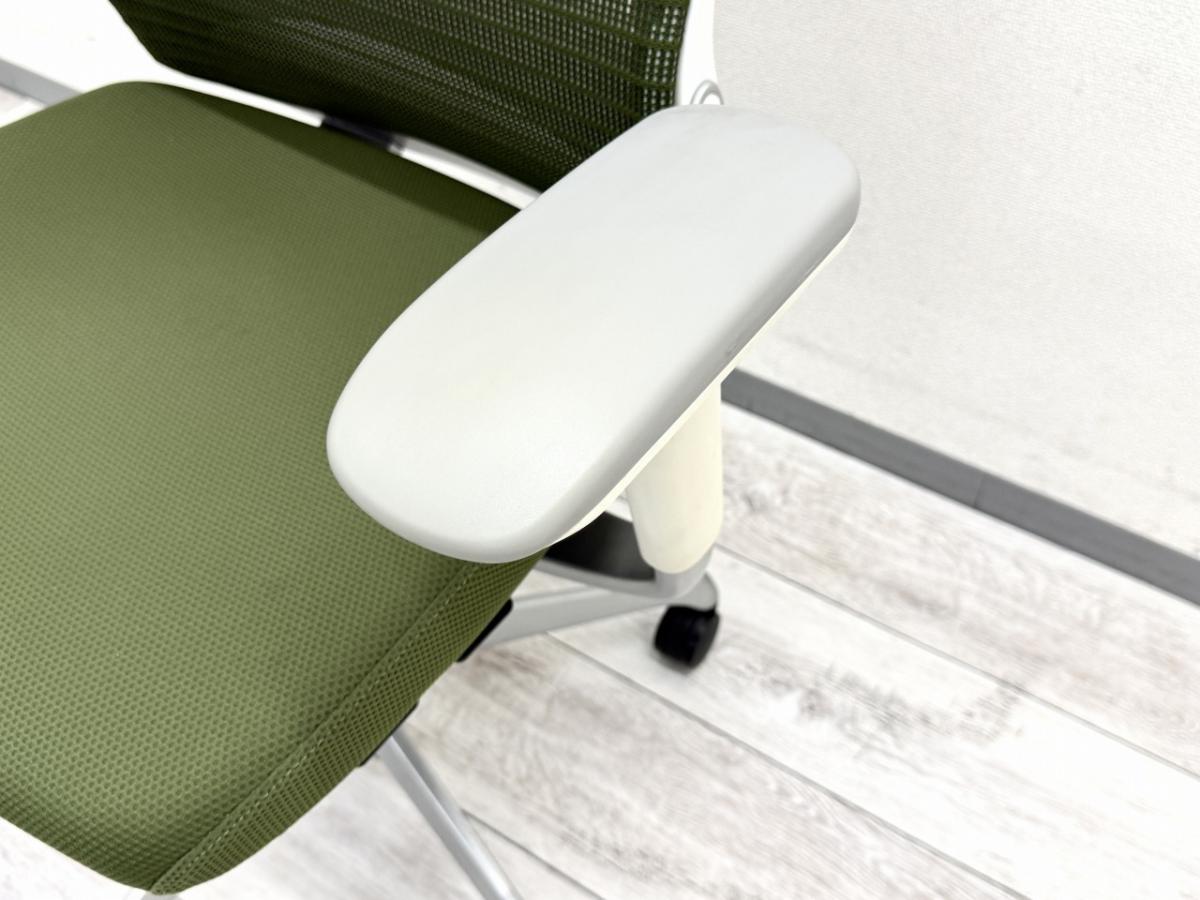 【シンプルなスタイリングに充実の機能を搭載したチェア!】■オカムラ(okamura)製 コーラルシリーズ ヘッドレスト付 ■可動肘 ■背面・座面タイプ:クッション ■色:ライムグリーン