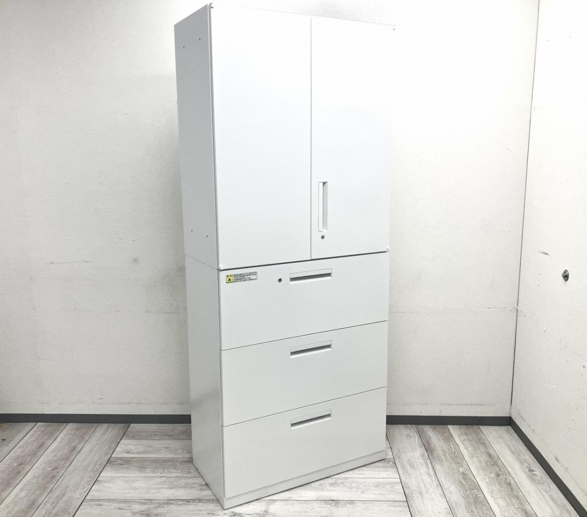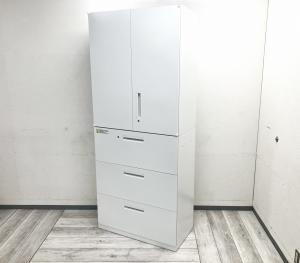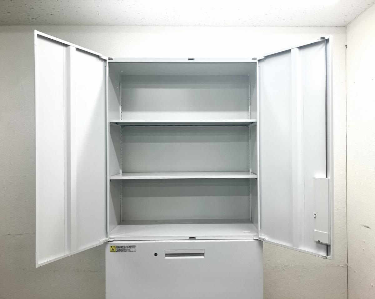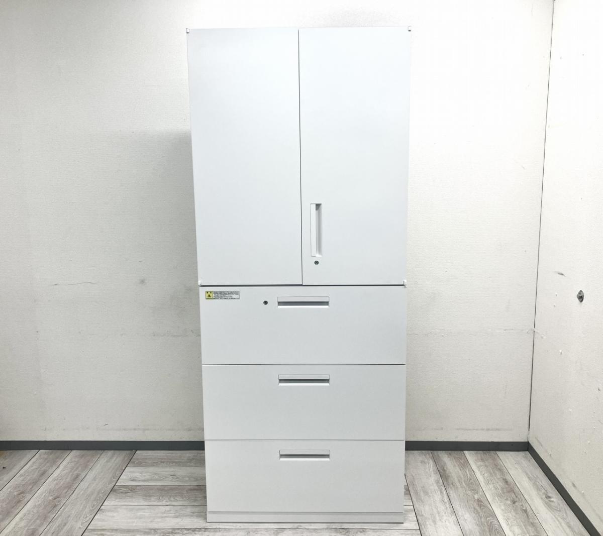 定番シリーズ!収納量抜群!観音開き+引き出しタイプのキャビネットセット! ■内田洋行/HS/ホワイト ラテラル取っ手部分日焼け有