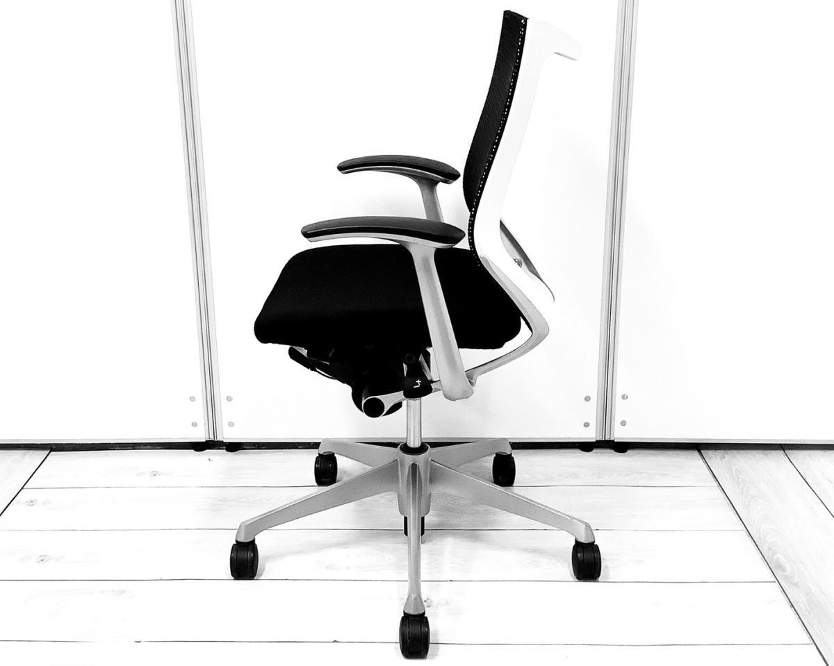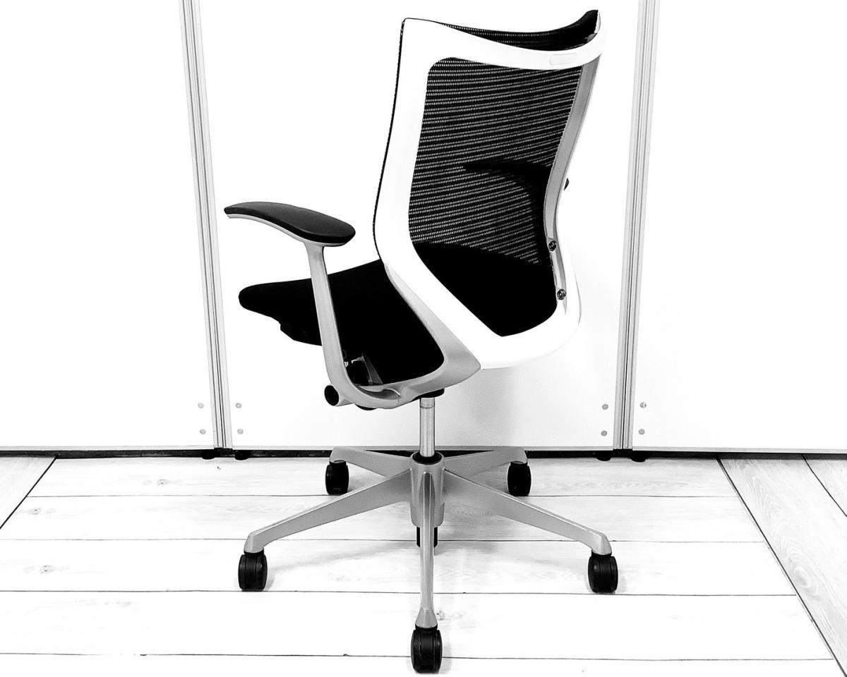 ■Okamura/オカムラ ■バロン(Baron)チェア ■ブラック×ホワイトシェル ■肘付き/固定肘 ■ローバック ■背面/メッシュ ■オススメ/大人気/定番商品【弊社使用欄:A01048432 K】