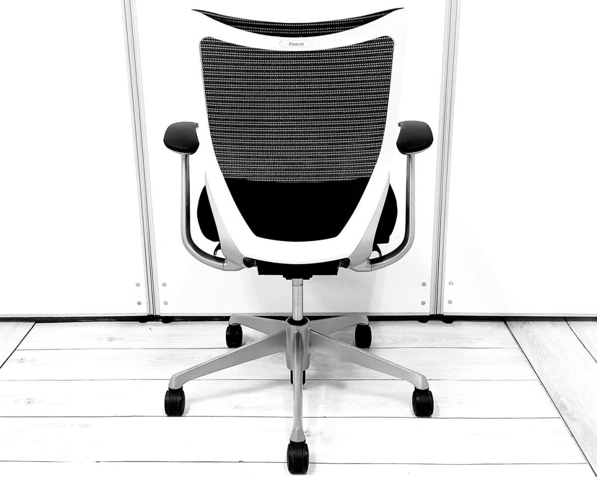 【国産メッシュチェアの代表格!オフィスの執務室、会議室におすすめ!】■オカムラ(okamura)製 バロン(Baron)チェア 肘付 ローバック 背面メッシュ ■固定肘 ■ブラック×ホワイトシェル【AD】