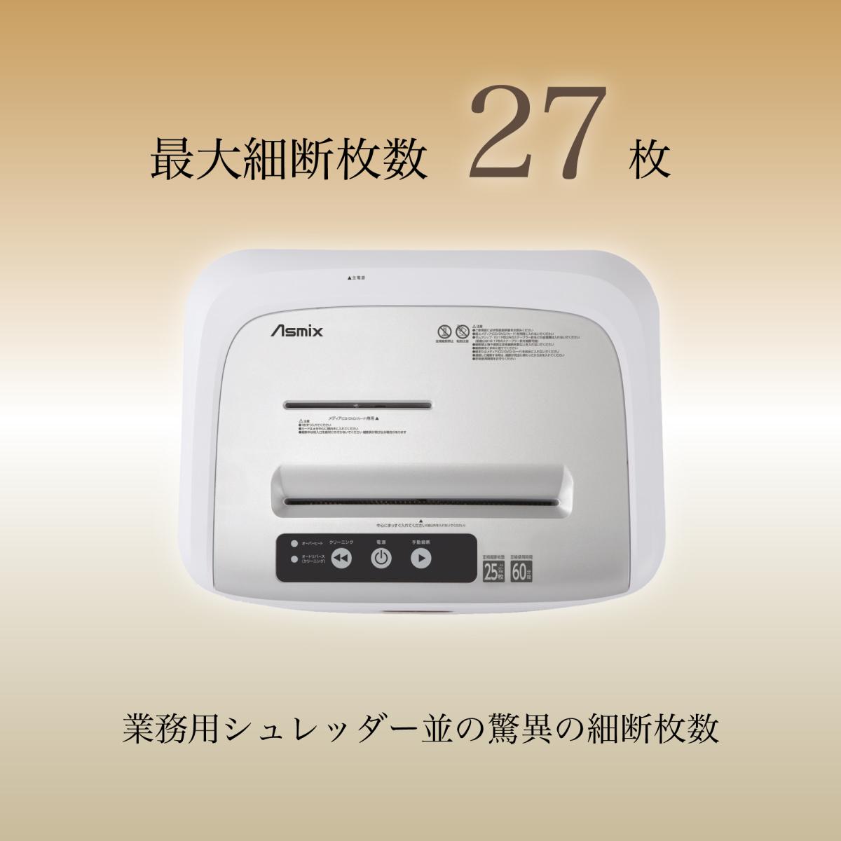 【新品】クロスカットシュレッダー 最大27枚細断! アスカ(Asmix) S71 ■細断時間60分のハイスペックシュレッダー!A4コピー用紙対応!- 全店共通商品
