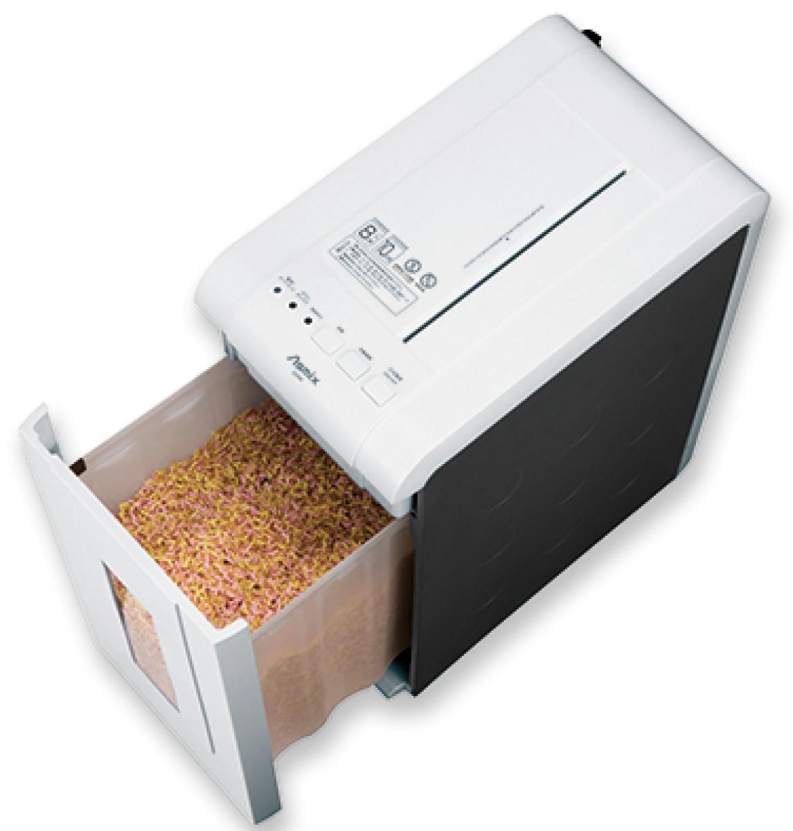 この細断サイズは、個人情報よりも秘匿性の高い設計図、戦略資料などの「機密文書」の細断にも適した「国際基準Lv.5」に適合し、極めて高いセキュリティを誇ります。