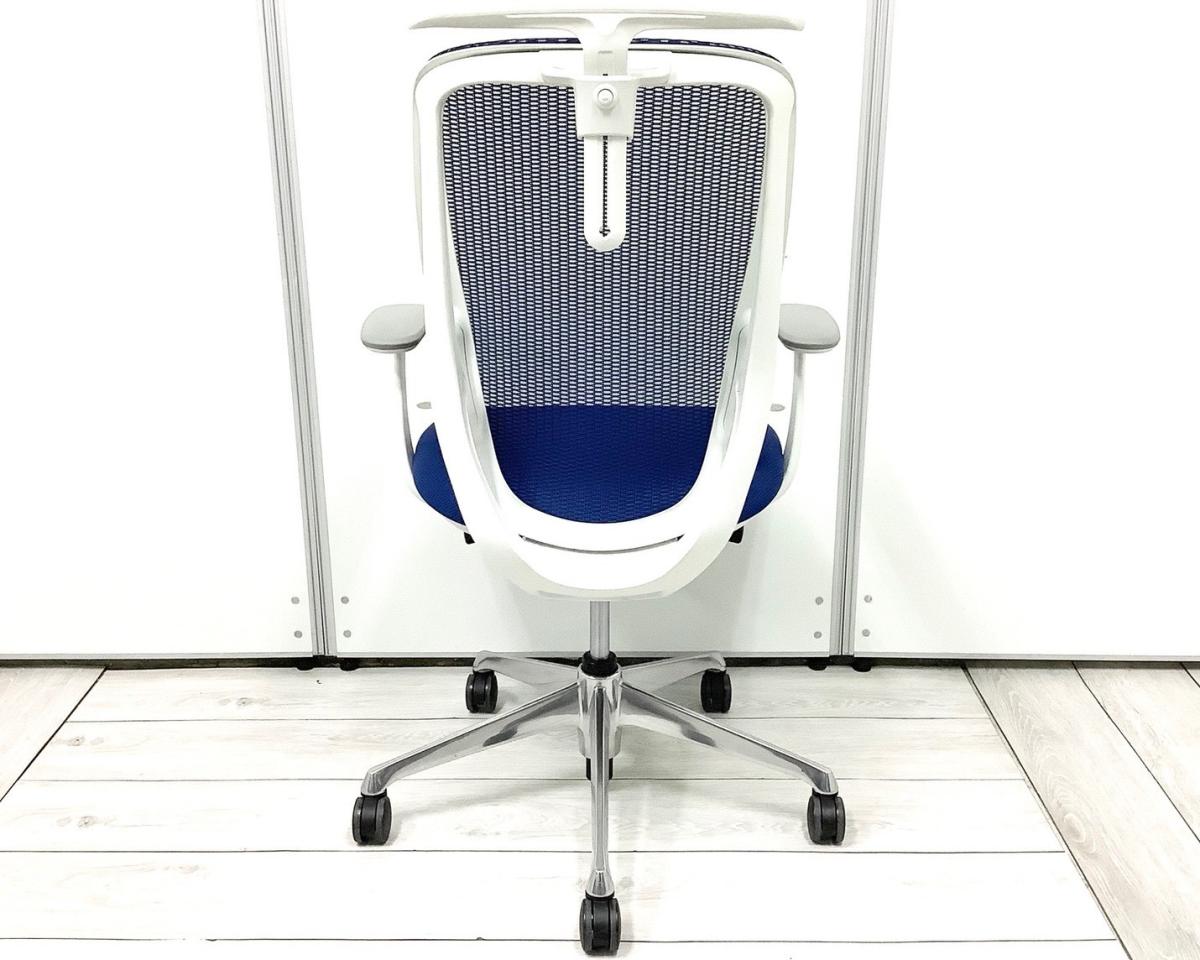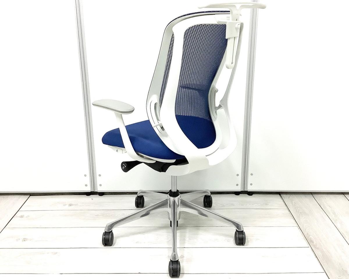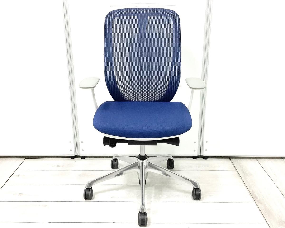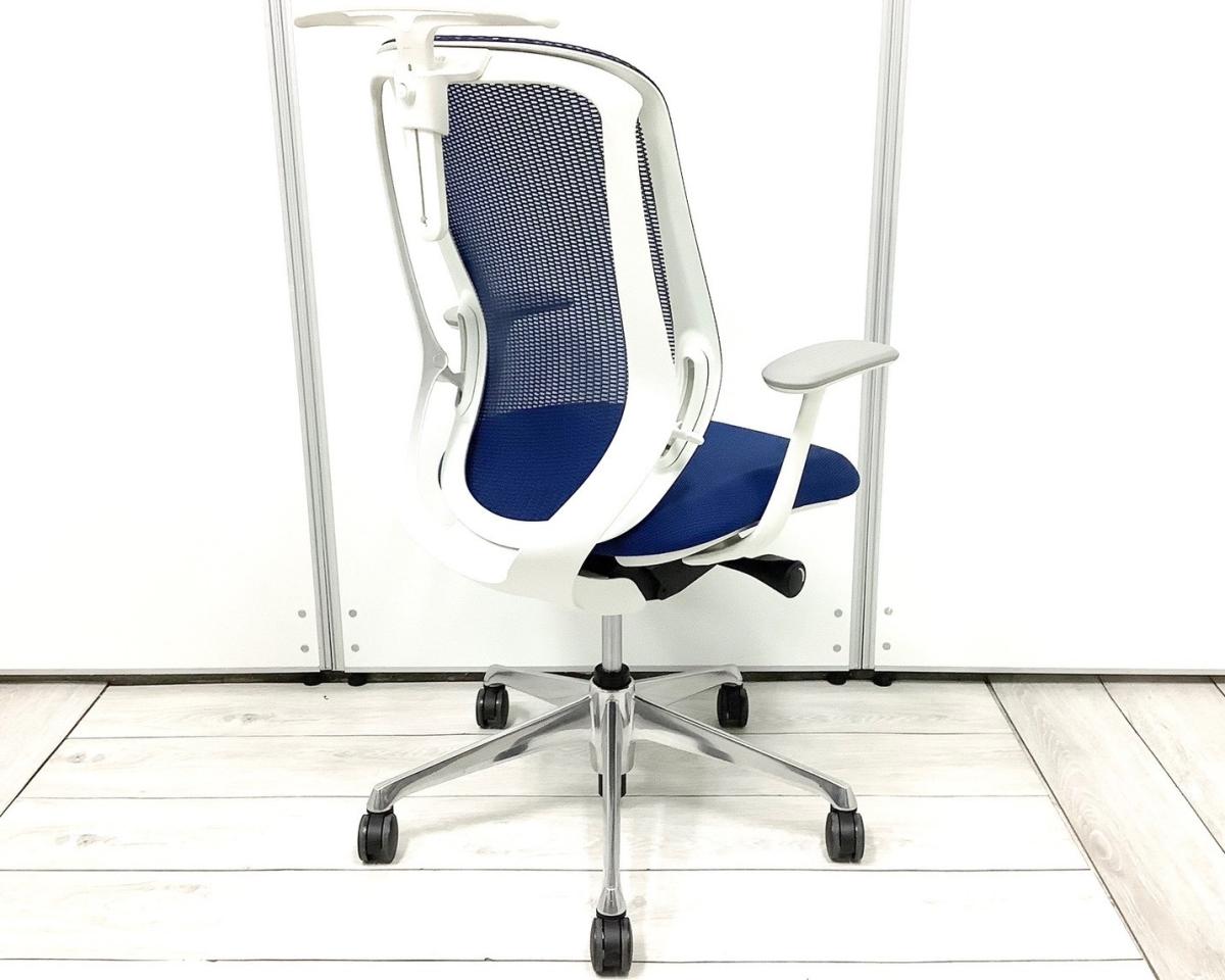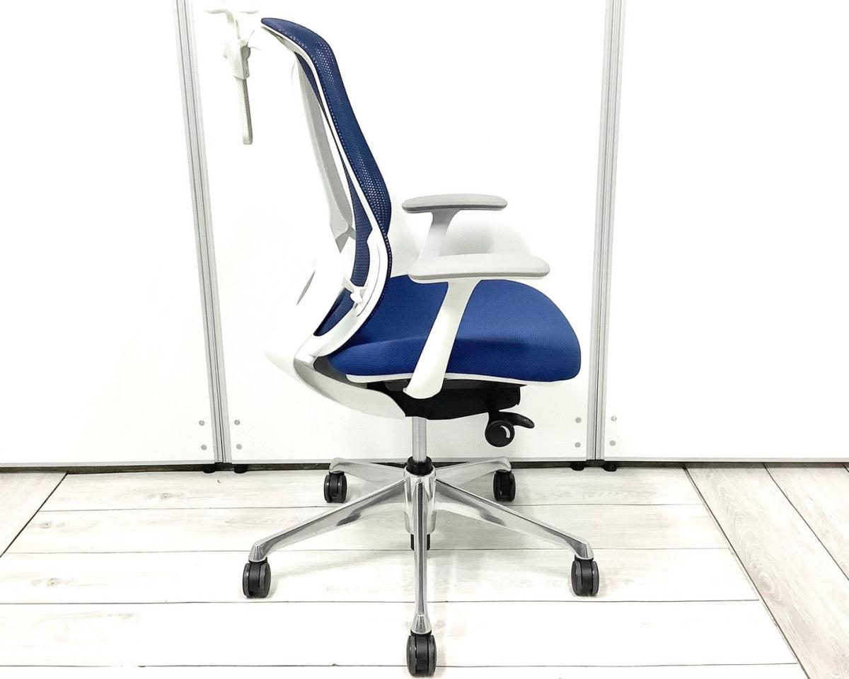 【三次元曲面が身体にフィット!前傾チルト機能付き大人気メッシュチェア!】■オカムラ(okamura)製 シルフィーチェア(Sylphy) 肘付きハイバック ■背面メッシュ ■可動肘 ■ブルー×ブラックシェル ■コートハンガー付き