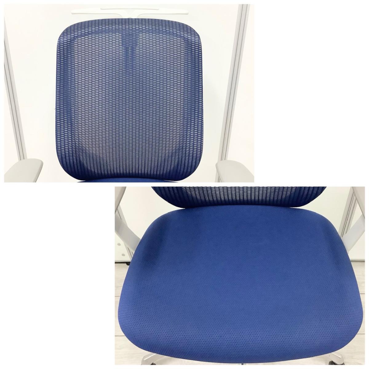 【訳アリ品】【三次元曲面が身体にフィット!前傾チルト機能付き大人気メッシュチェア!】■オカムラ(okamura)製 シルフィーチェア(Sylphy) 肘付きハイバック ■背面メッシュ ■可動肘 ■ブルー×ブラックシェル