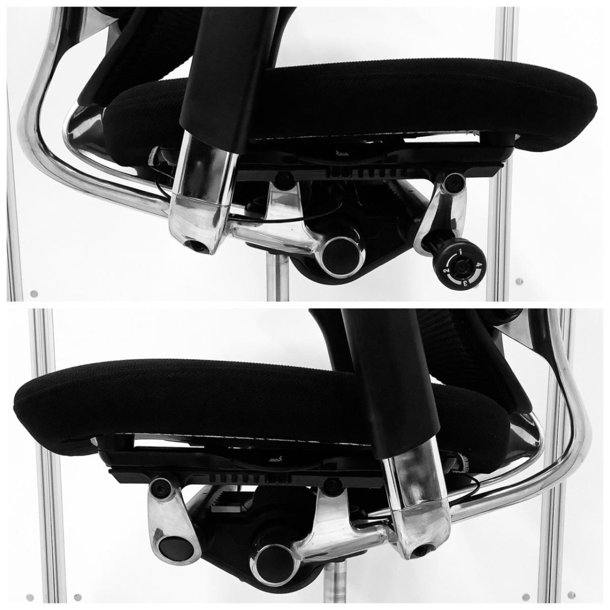 - 座面の前後スライド調整レバーで操作(前後50mm分調整で)できます。(グラデーションサポートメッシュタイプを除く)